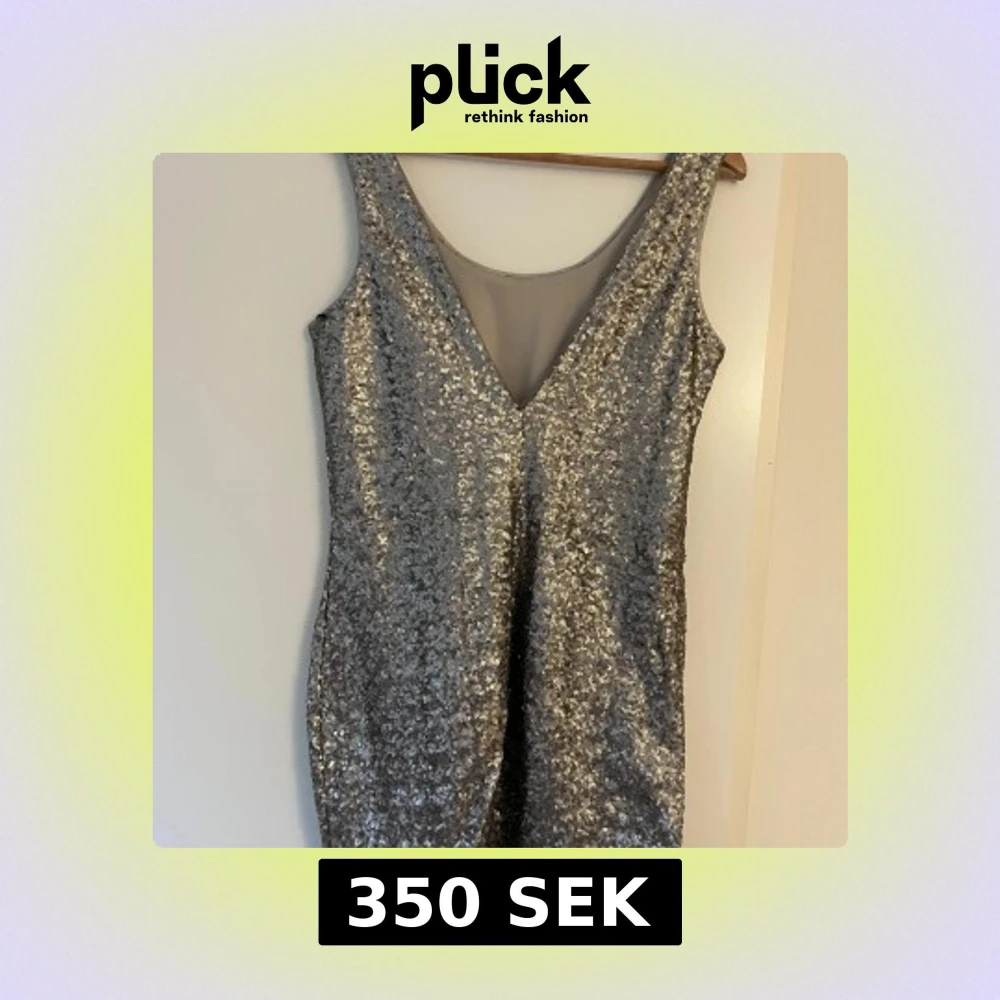Snygg glittrig silverklänning med djup v-ringning bak och ärmlös design. Perfekt för en festlig kväll med sitt glittrande material som fångar ljuset. Klänningen har en elegant passform som framhäver figuren.