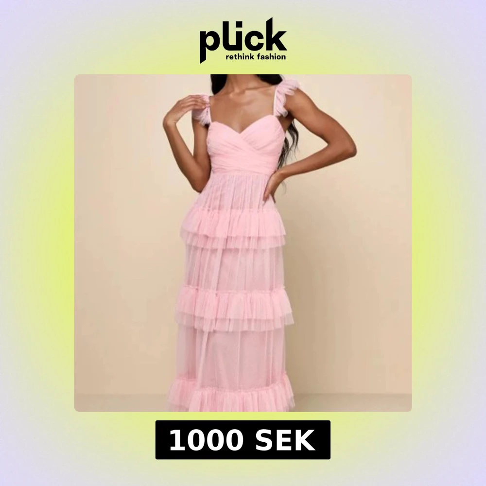 Säljer en rosa balklänning med volanger och smala axelband. Klänningen har en vacker omlott-design och är perfekt för bal eller andra fester. Materialet är lätt och luftigt, vilket ger en drömlik känsla. Passar perfekt för en somrig look! 🌸