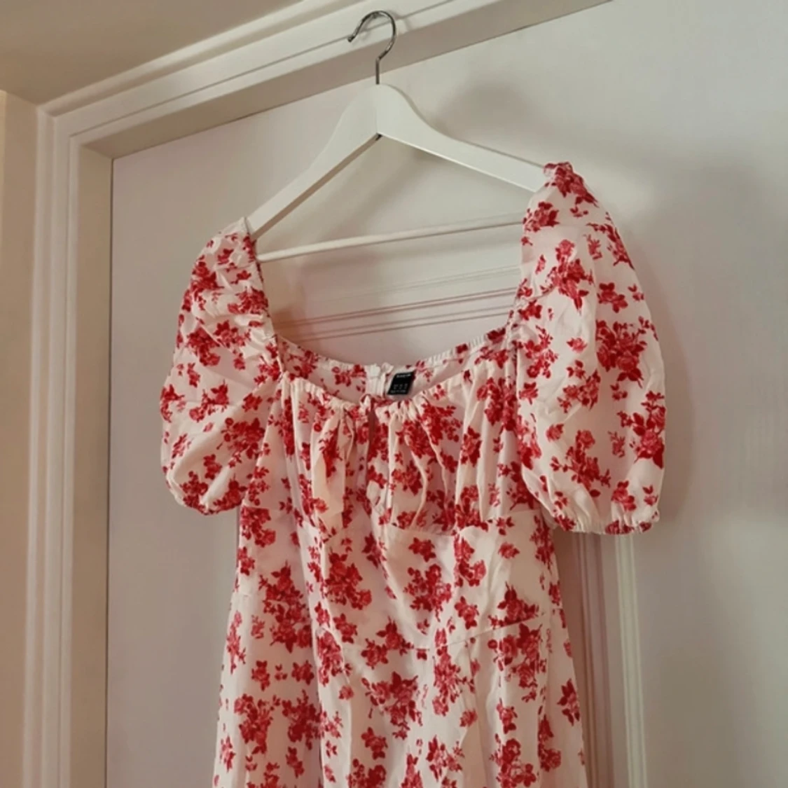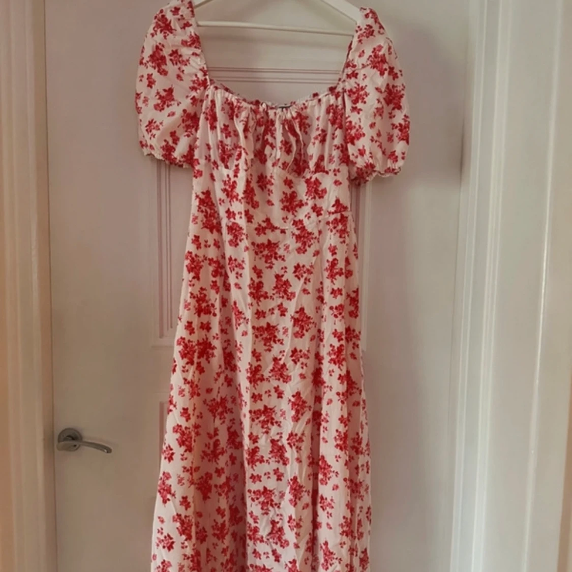 Säljer en helt ny lång blommig sommarklänning med en slits fram på ena benet. Aldrig använd. Storlek L men jag skulle snarare säga att det är en storlek M.