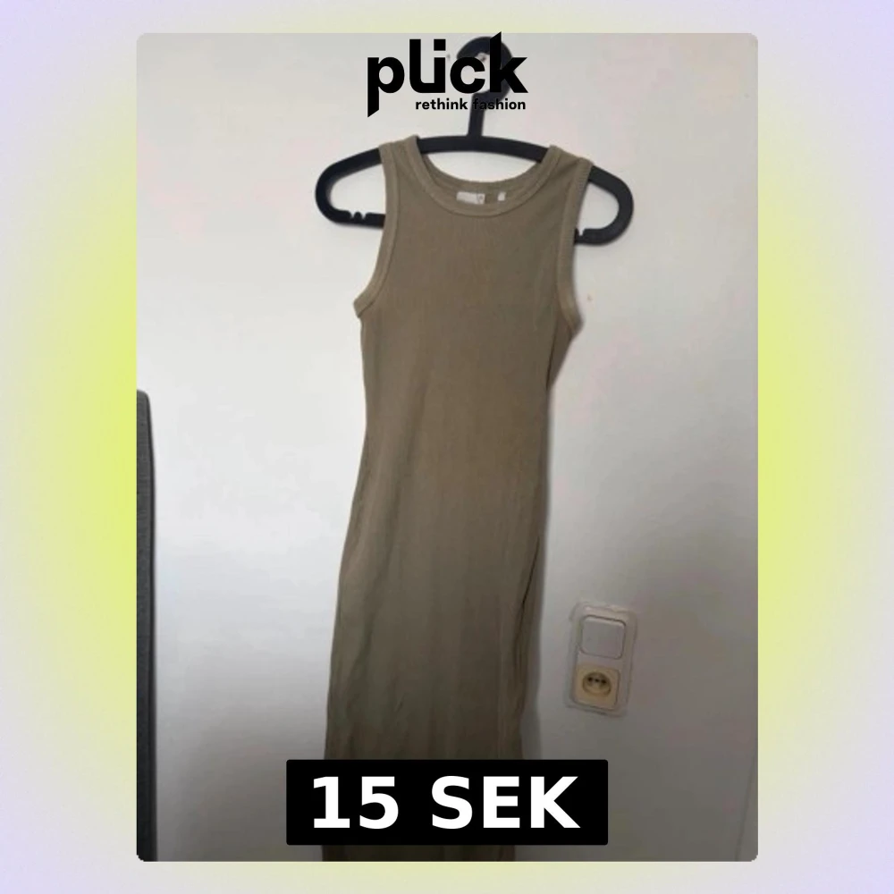 Säljer en beige ribbad långklänning från Etirel i storlek M. Klänningen är ärmlös och har en rund halsringning. Perfekt för en enkel och stilren look under varmare dagar. Obs! En del använd och lite urtvättad