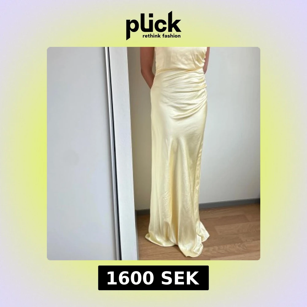 Säljer en elegant ljusgul långklänning i satin från Stories. Klänningen har oneshoulder-design och vacker drapering i midjan som ger en smickrande siluett. Jag är 175 cm lång och bilderna är utan klackar. Aldrig använd. Nypris: 1900 kr