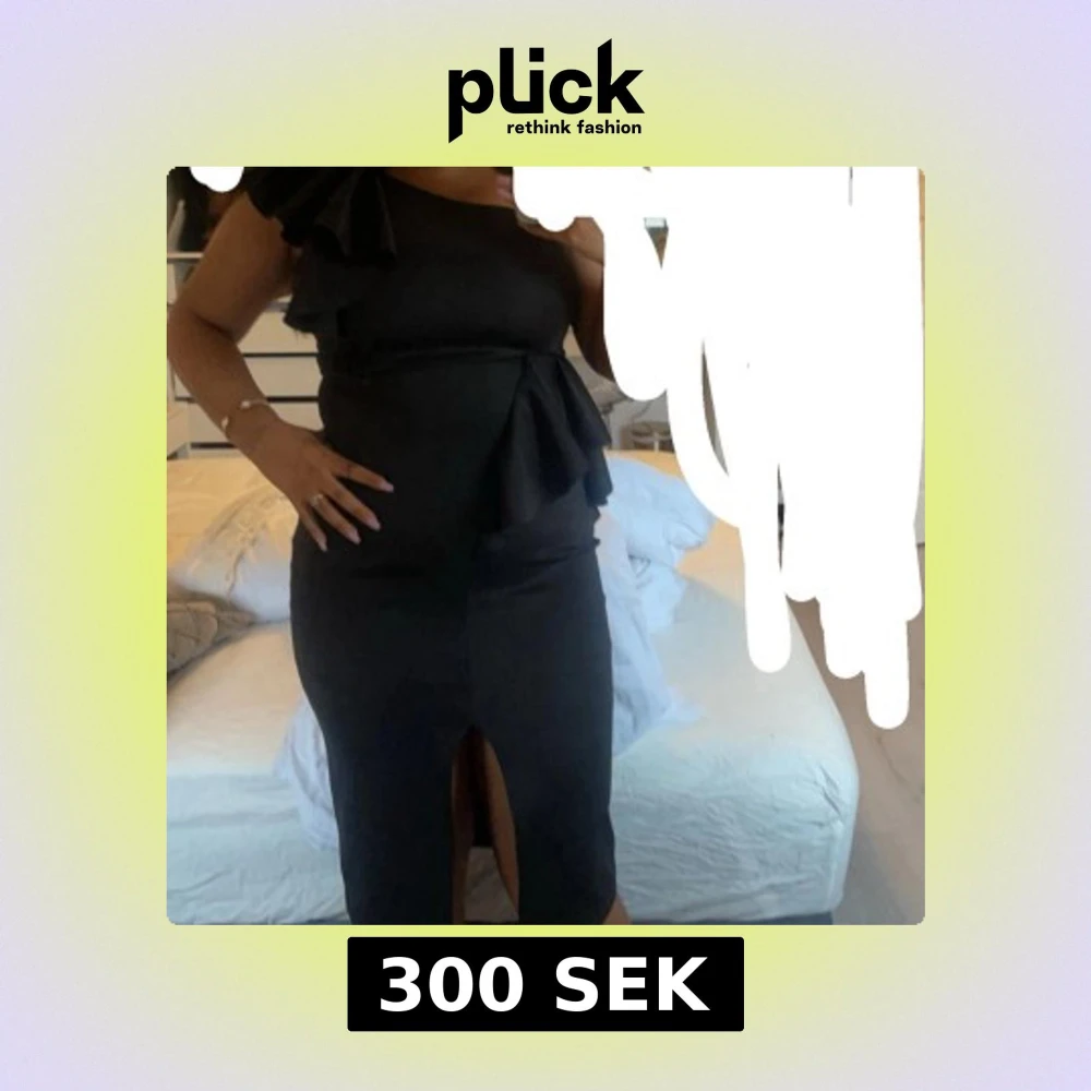 Svart oneshoulder klänning med volang