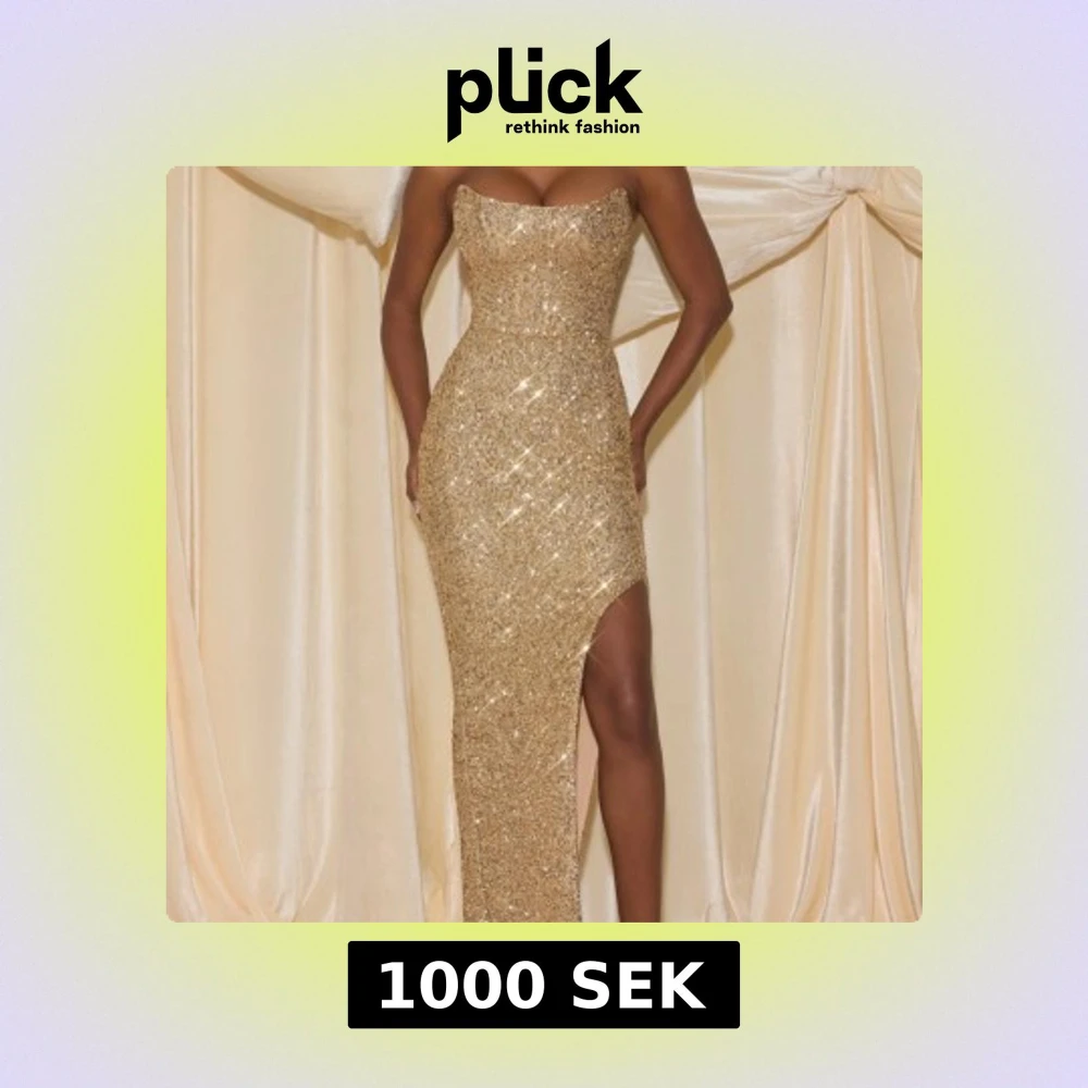 Glittrig guldklänning med slits