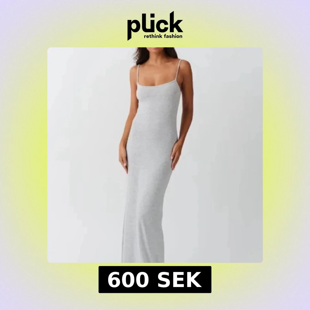 Supersnygg grå långklänning med smala axelband och figurnära passform. Klänningen har en enkel och stilren design som ger en clean look. Perfekt för dig som gillar minimalistisk stil och vill ha något som känns både bekvämt och trendigt.