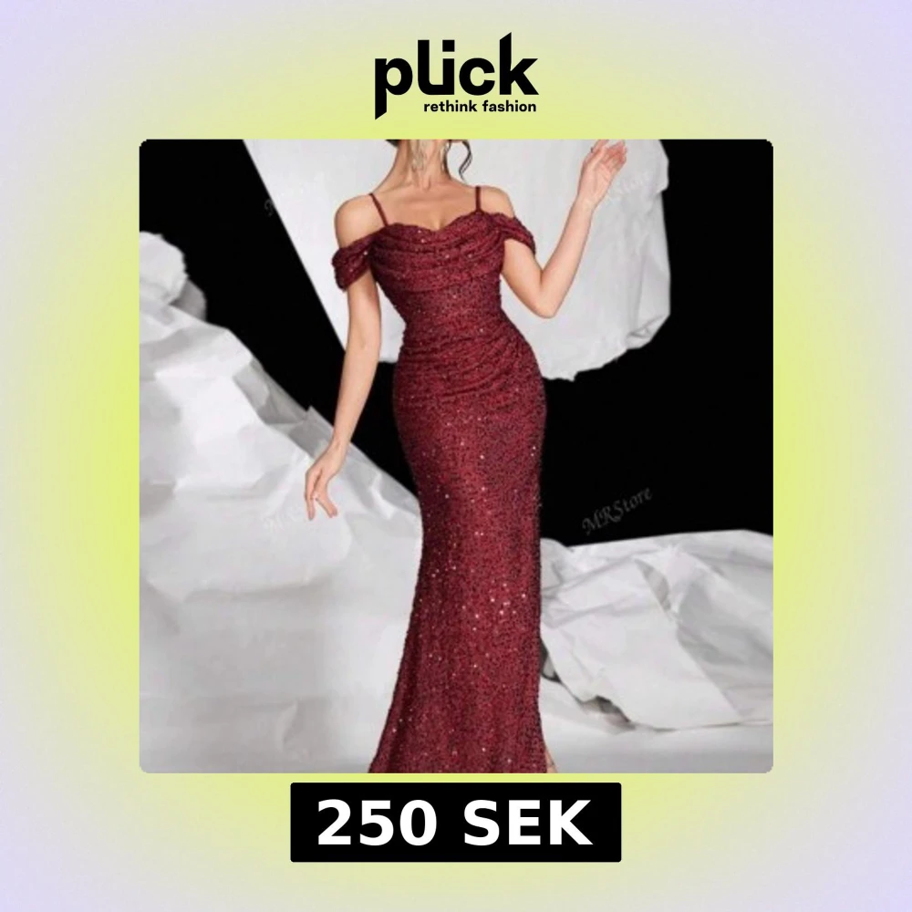 Supersnygg vinröd långklänning med glittriga paljetter och offshoulder-detalj. Klänningen har smala axelband och en figurnära passform som framhäver siluetten. Perfekt för dig som vill sticka ut på bal eller fest! Pris kan diskuteras