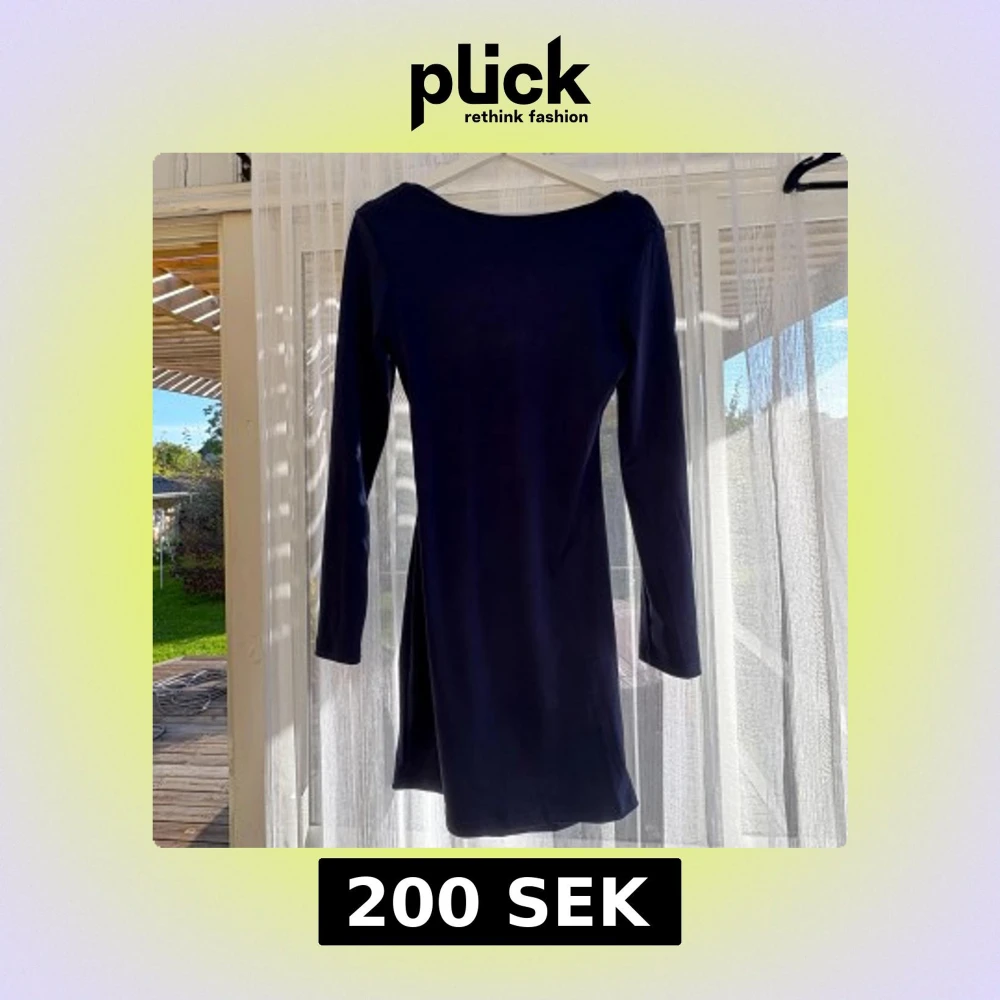 Snygg mörkblå kortklänning med långa ärmar och en riktigt cool öppen rygg med snörningsdetaljer. Klänningen har en enkel framsida och är tillverkad i ett mjukt, stretchigt material som sitter skönt på kroppen.