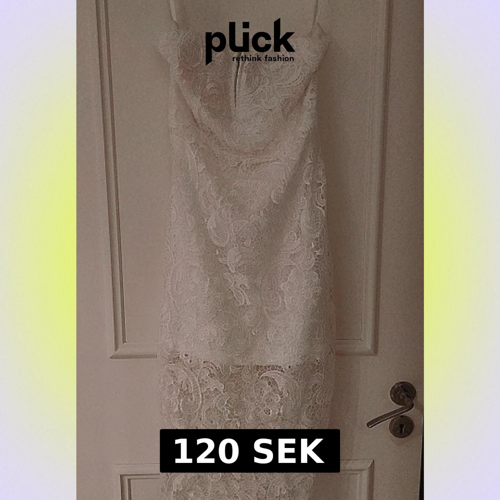 Supersnygg vit spetsklänning från NLY One i storlek M. Klänningen är kort med smala axelband och har ett vackert blommigt spetsmönster. Den har dragkedja i ryggen och fodrad insida för extra komfort. Perfekt för dig som vill ha en elegant look med romantiska detaljer.