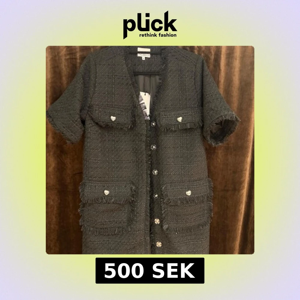 Snygg svart klänning från Noella med korta ärmar och fransiga detaljer. Kappan har flera fickor med hjärtformade knappar och en stilren design. Perfekt för en chic look.