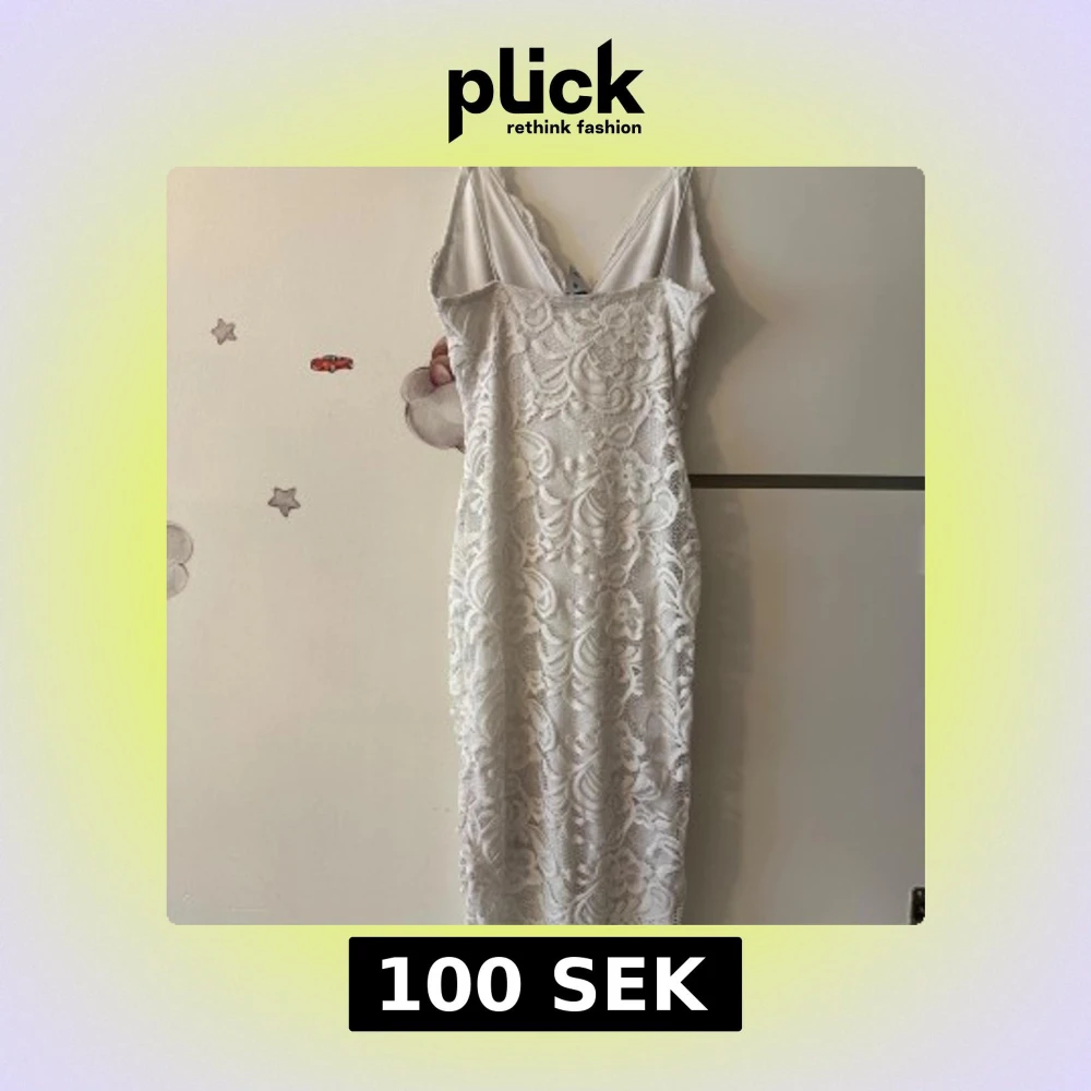 Supersnygg vit spetsklänning från NLY One med smala axelband och v-ringning både fram och bak. Klänningen är figurnära och har ett vackert blommigt spetsmönster som ger en romantisk vibe. Perfekt för dig som vill sticka ut med en elegant look.