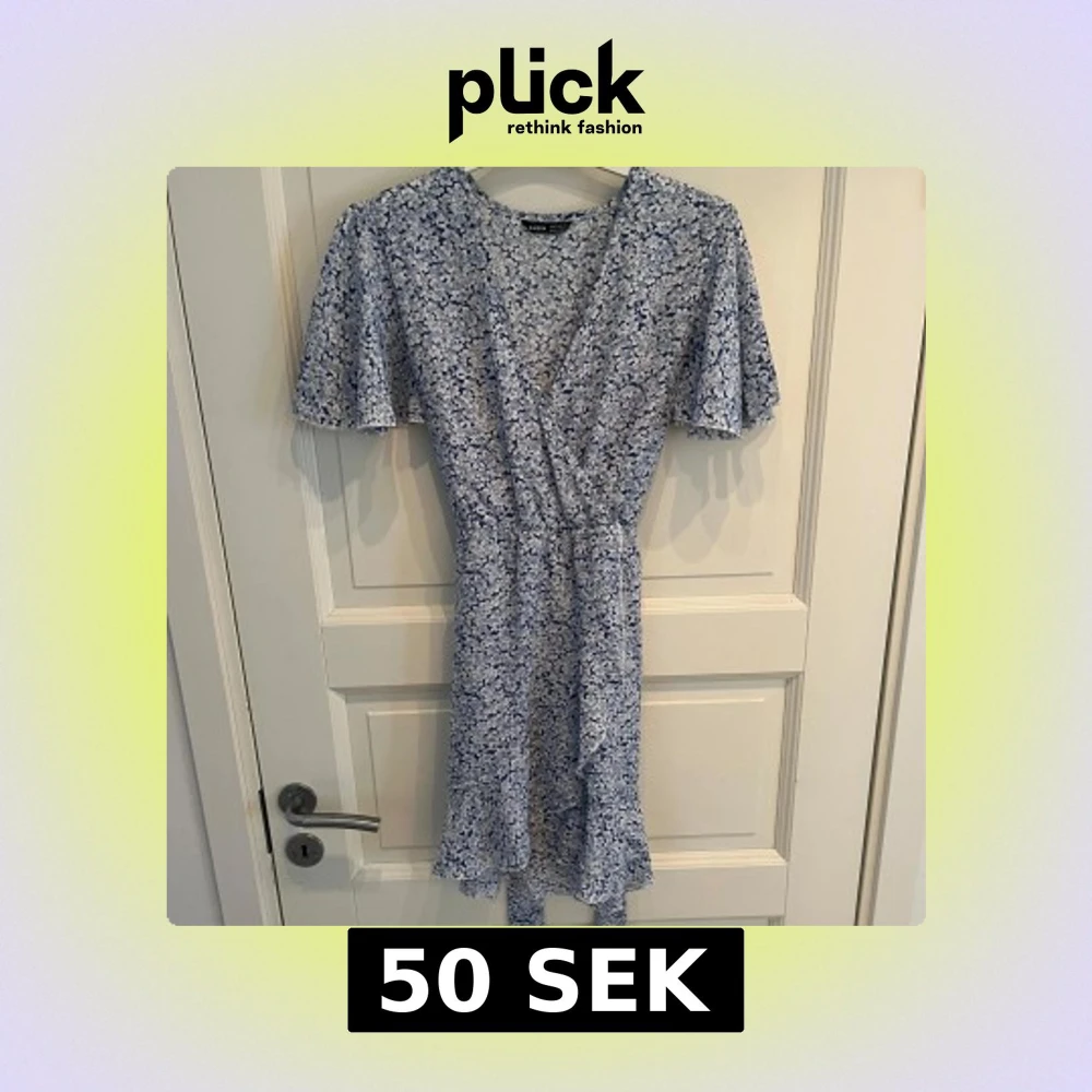 Säljer en superfin ljusblå omlottklänning från SHEIN med vita blommor, korta ärmar och volangkant nedtill💕💕Klänningen har justerbart knytband i midjan och v-ringad hals. Jätte fin passform och knappt använd!!🫶🏼🫶🏼
