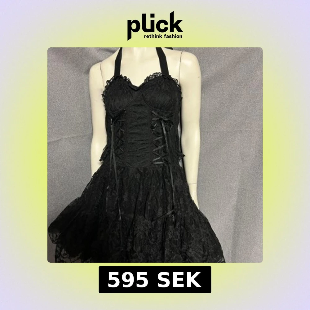 Svart spetsklänning med snörning från Poizen. Storlek M