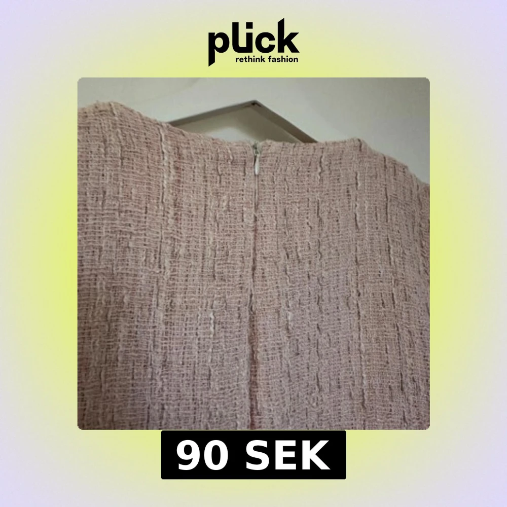 Supersöt ljusrosa kort klänning i strukturerat tyg med v-ringning och pärlknappar framtill. Klänningen har korta ärmar, dekorativa fickor med pärldetaljer och dragkedja i ryggen. Perfekt för dig som gillar en chic och feminin stil. Vet ej märke men passar S / M