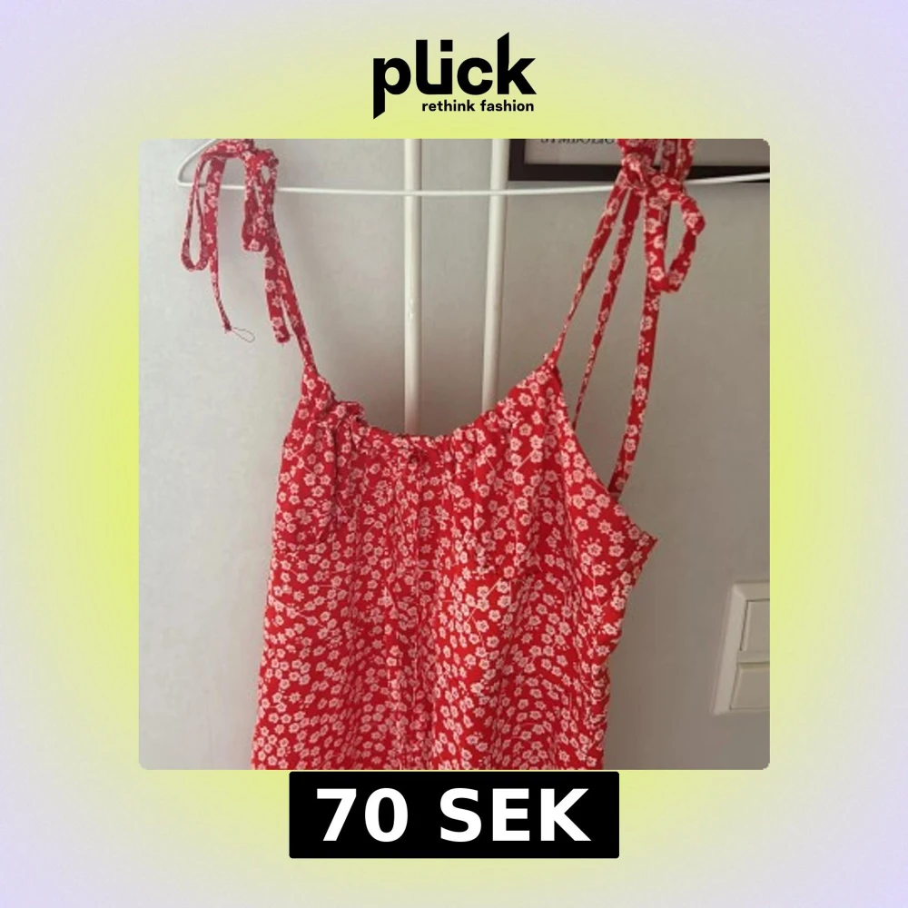 Supersöt röd kortklänning med vita blommor och smala axelband som knyts upptill. Lätt och luftig modell, perfekt för varma dagar. Klänningen har en avslappnad passform och är tillverkad i ett mjukt tyg som känns skönt mot huden.
