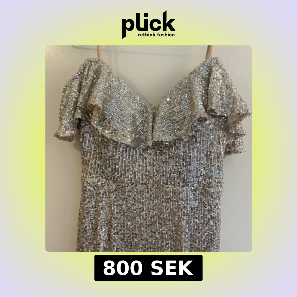 Säljer en fantastisk glittrig långklänning i silver med volangdetaljer vid axlarna. Klänningen har en elegant v-ringning och en vacker slits med inslag av ljusrosa tyg. Perfekt för en glamorös kväll! ✨Köparen betalar frakt.