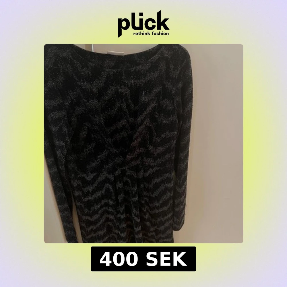 Snygg svart klänning med glittrigt zebramönster och lång ärm. Klänningen har en v-ringad front och är tillverkad i ett glittrigt syntetmaterial som ger en festlig vibe. Perfekt för dig som vill sticka ut med coola detaljer och mönster.