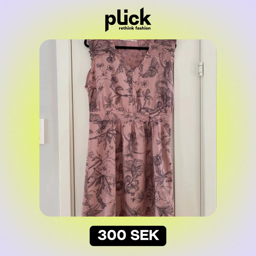 Rosa klänning med blommönster från Part two i strl 38. Modell Oleize Sparsamt använd och i fint begagnat skick. Mått Över bröstet: ca 52 cm Längd från axeln och ner: ca 98 cm 61% viskos och 39% bomull