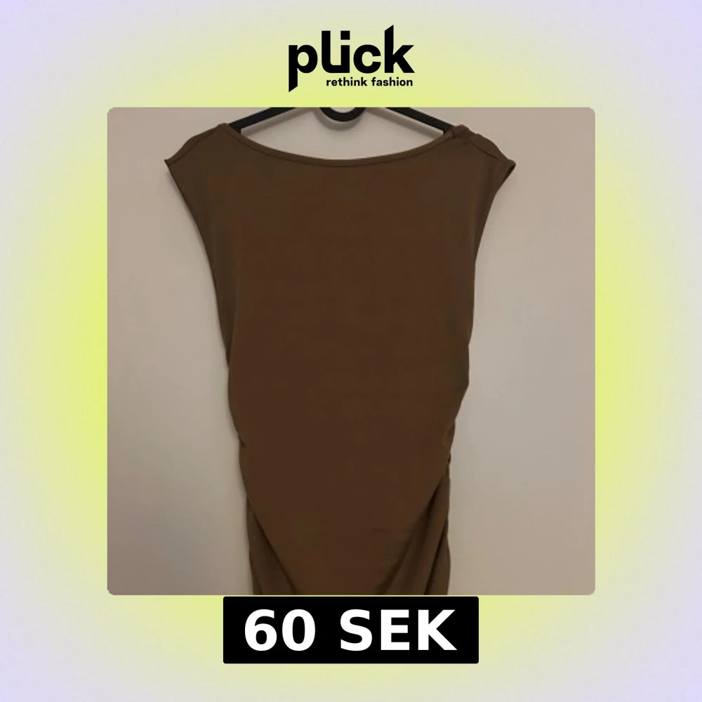 Snygg brun klänning med draperad design och öppen rygg. Perfekt för en stilren look.