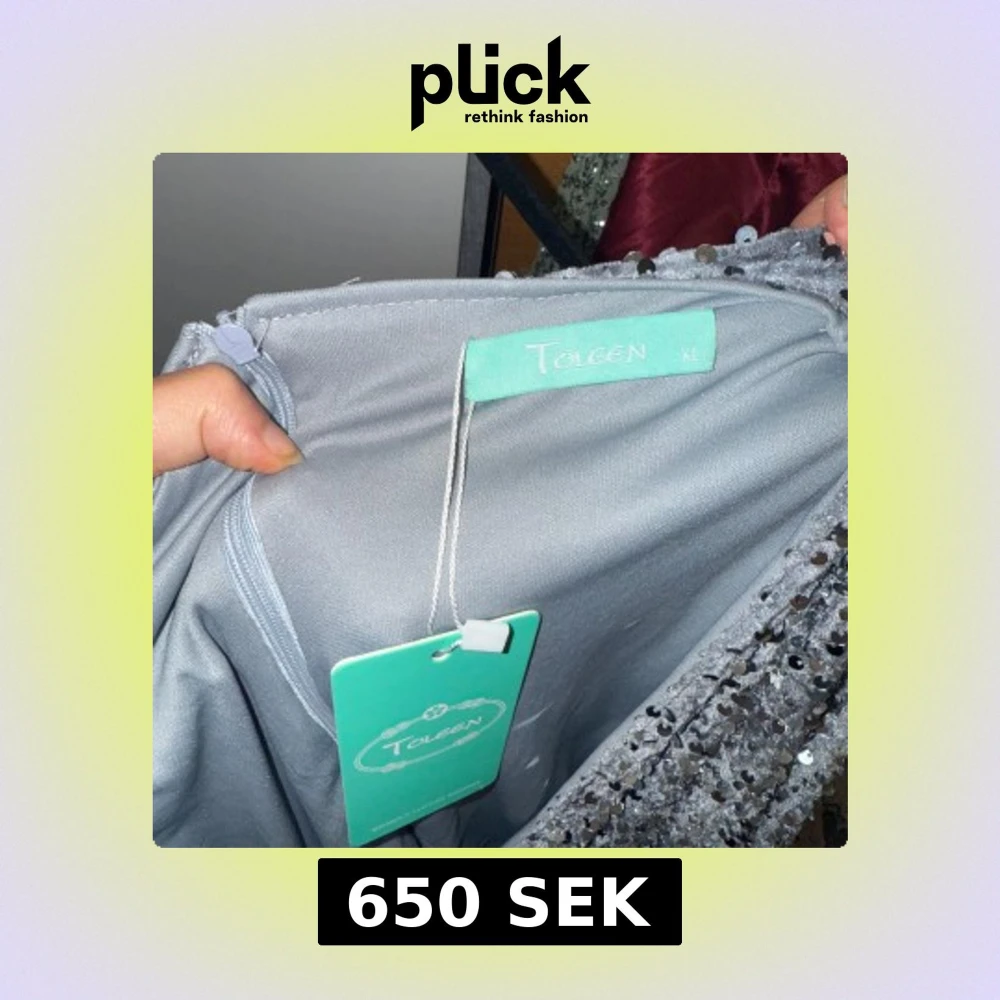 Säljer en superglittrig silverfärgad klänning från Toleen i omlottmodell. Klänningen har långa ärmar, v-ringning och är täckt av paljetter som verkligen fångar ljuset. Perfekt för dig som vill sticka ut och glänsa på festen!