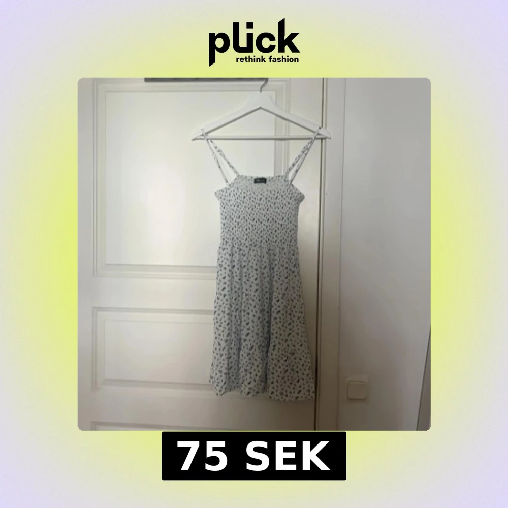 Supersöt vit klänning från FB Sister med blått blommönster och smock upptill. Klänningen har tunna axelband och en luftig, kort modell som passar perfekt för varma dagar. Den är lätt och flowy, vilket gör den riktigt bekväm och snygg.