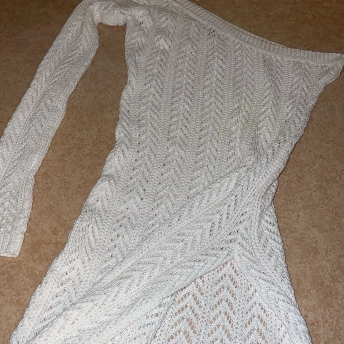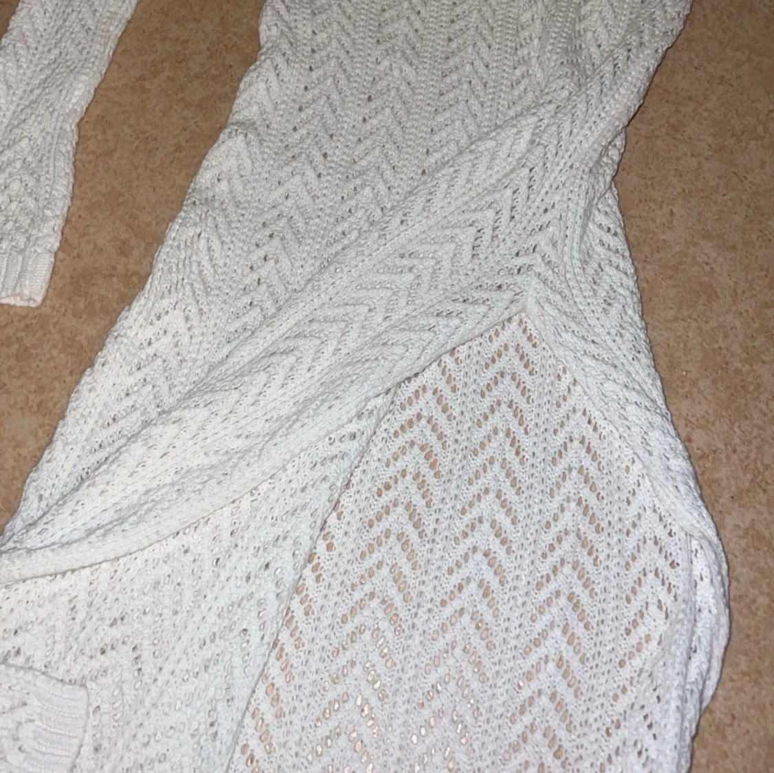 Säljer en vit strand klänning från Madlady i storlek S. har ett snyggt hålmönster i zickzack och har en arm