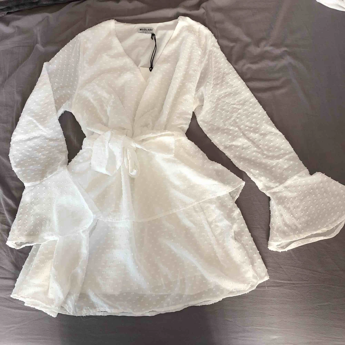 Vit klänning från madlady. Aldrig använd, prislappen sitter kvar. Köpt för 499kr, Säljer för 250kr inklusive frakt.