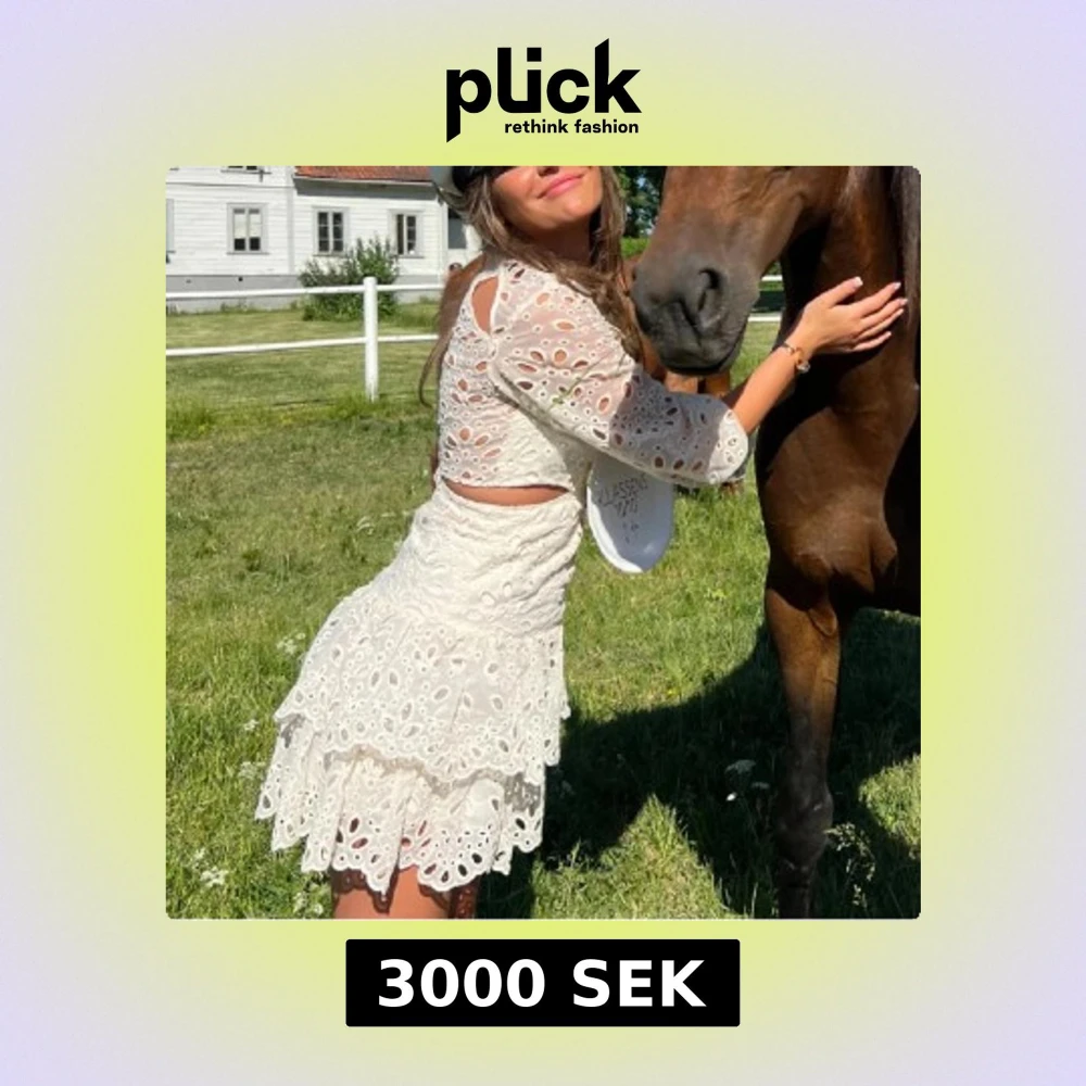 Superfin vit kortklänning med broderad spets, volanger och cut-out detaljer i midjan. Klänningen har trekvartsärmar med puff och rund halsringning. Perfekt för sommarens alla tillfällen!