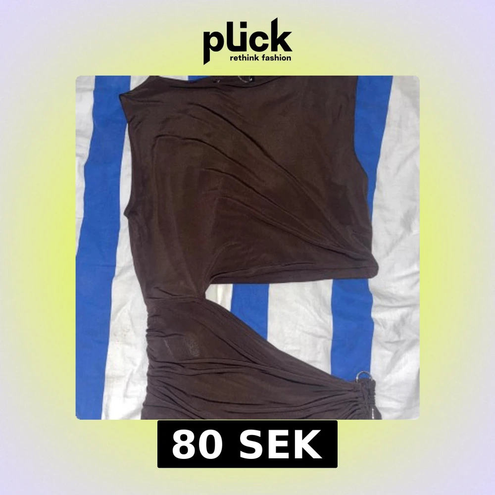 Säljer en brun kortklänning från NA-KD med one shoulder-design och snygga omlottdetaljer. Klänningen har rynkade partier och en metallring vid höften som ger en cool touch. Materialet är mjukt och stretchigt, perfekt för dig som gillar trendiga och unika plagg.