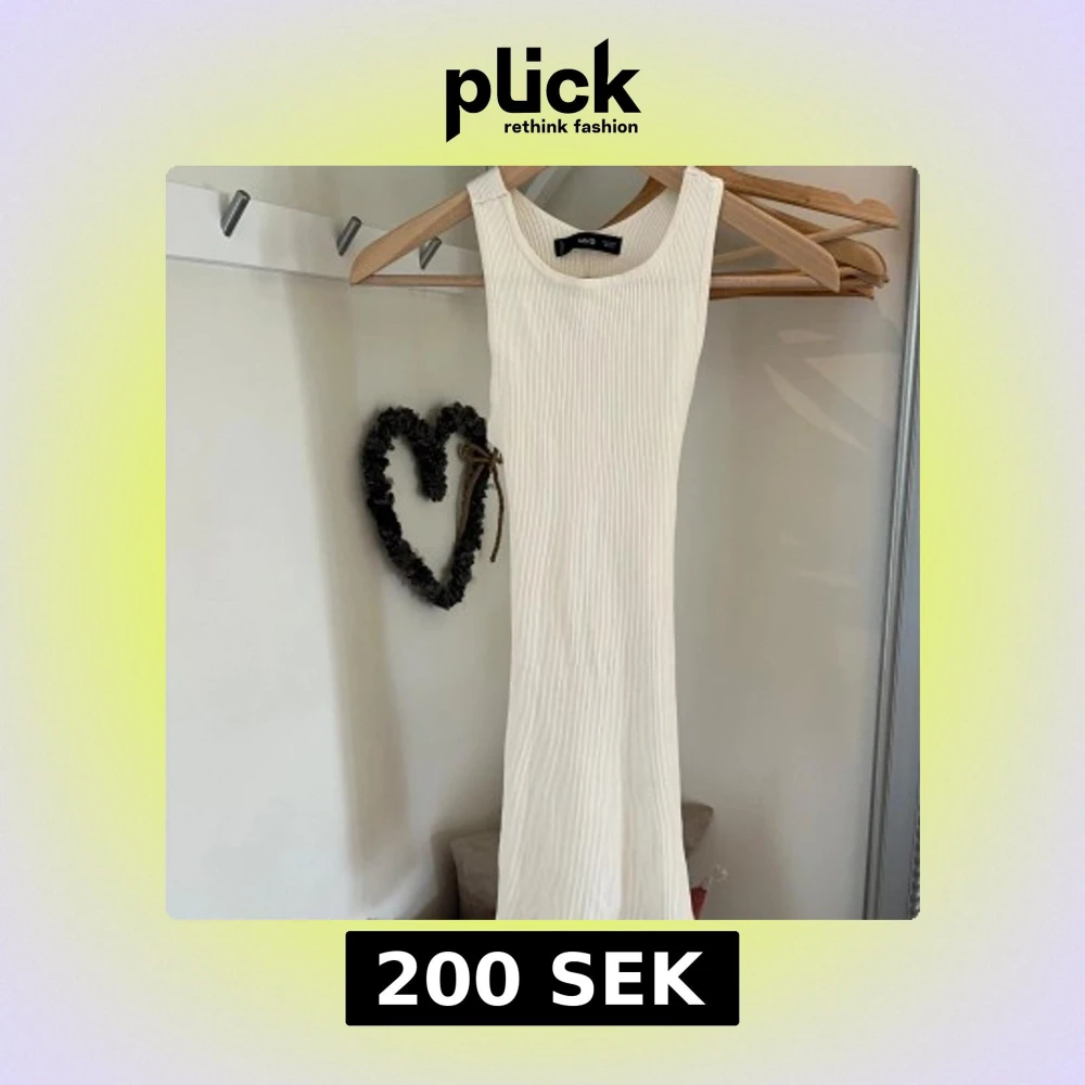 Snygg vit ribbad klänning från Mango med öppen rygg. Perfekt för varma dagar med sin ärmlösa design och mjuka material.