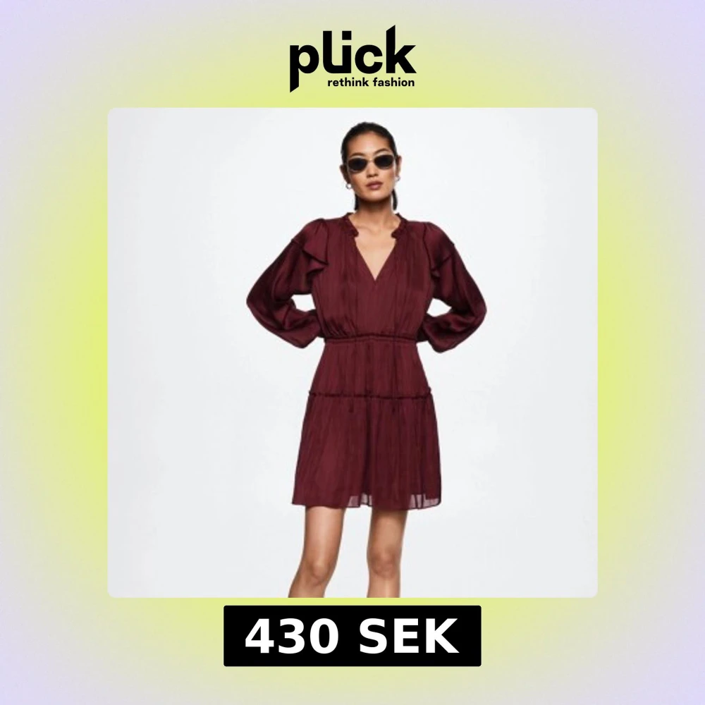 Snygg vinröd klänning från mango med v-ringning och volangdetaljer. Klänningen har långa ärmar och en luftig passform. Endast använd en gång. Nypris ca 800kr