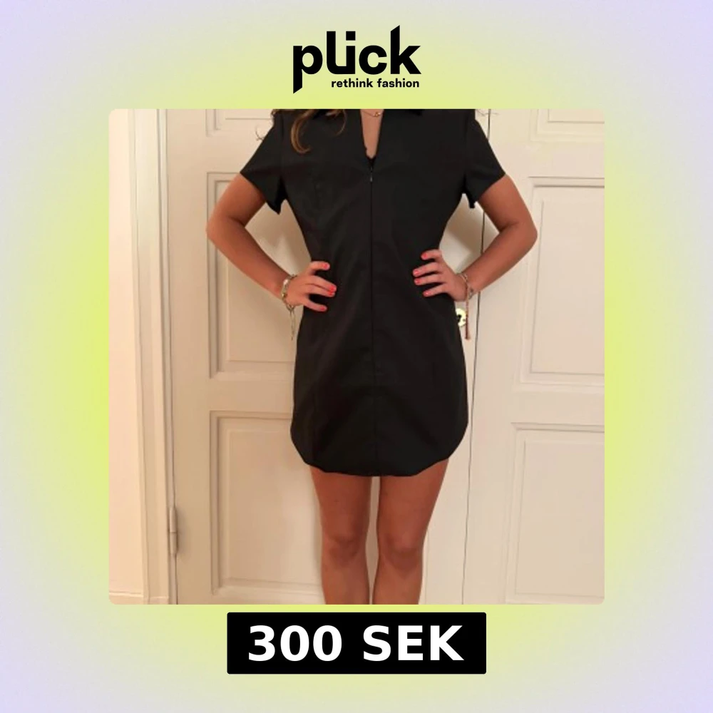 Snygg svart kort klänning med krage och dragkedja framtill.