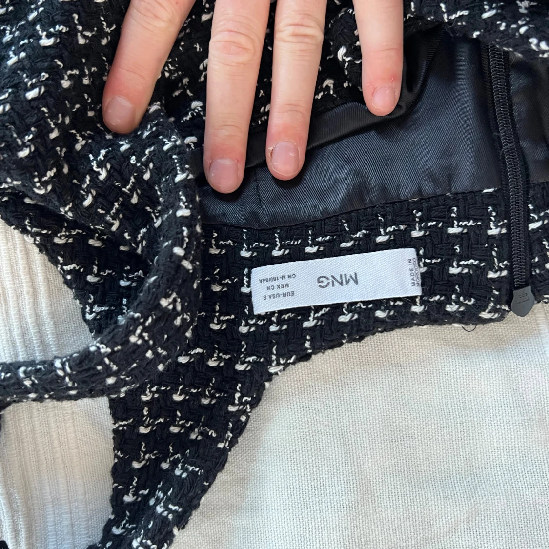 Mini tweed klänning, S, Mango. Superfin att ha med en tröja under. Går att styla upp och ner, väldigt användbar men kommer tyvärr inte till användning. Säljes därför billigt. Du får den för 100 om du köper ett plagg till!