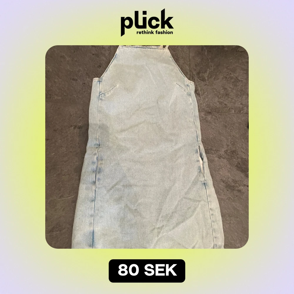 Säljer en snygg ljusblå jeansklänning med axelband och dragkedja bak. Perfekt för sommardagar eller en avslappnad vårlook. Klänningen har en enkel och stilren design som gör den lätt att matcha med olika accessoarer.
