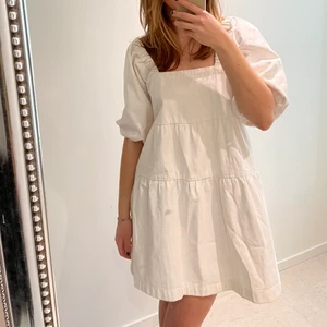 Säljer min studentklänning jag hade förra året 🤍 Klänningen är i ett ganska tjockt nästan jeansliknande material med en superfin fyrkantig urringning både fram och bak!