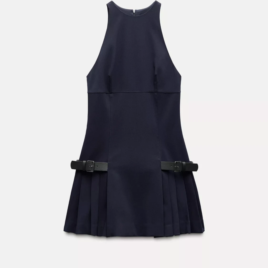 Säljer denna sjuuukt snygga marinblåa klänningen från Zara i storlek M. Klänningen har dekorativa bältesdetaljer i midjan och en elegant, veckad kjol. Klänningen har tyvärr inte alls kommit till användning utan endast testats på en gång, varav varför prislappen är av. Men den är i helt nytt skick! Kollar därför om intresse av att köpa finns! 🍓❤️🔥