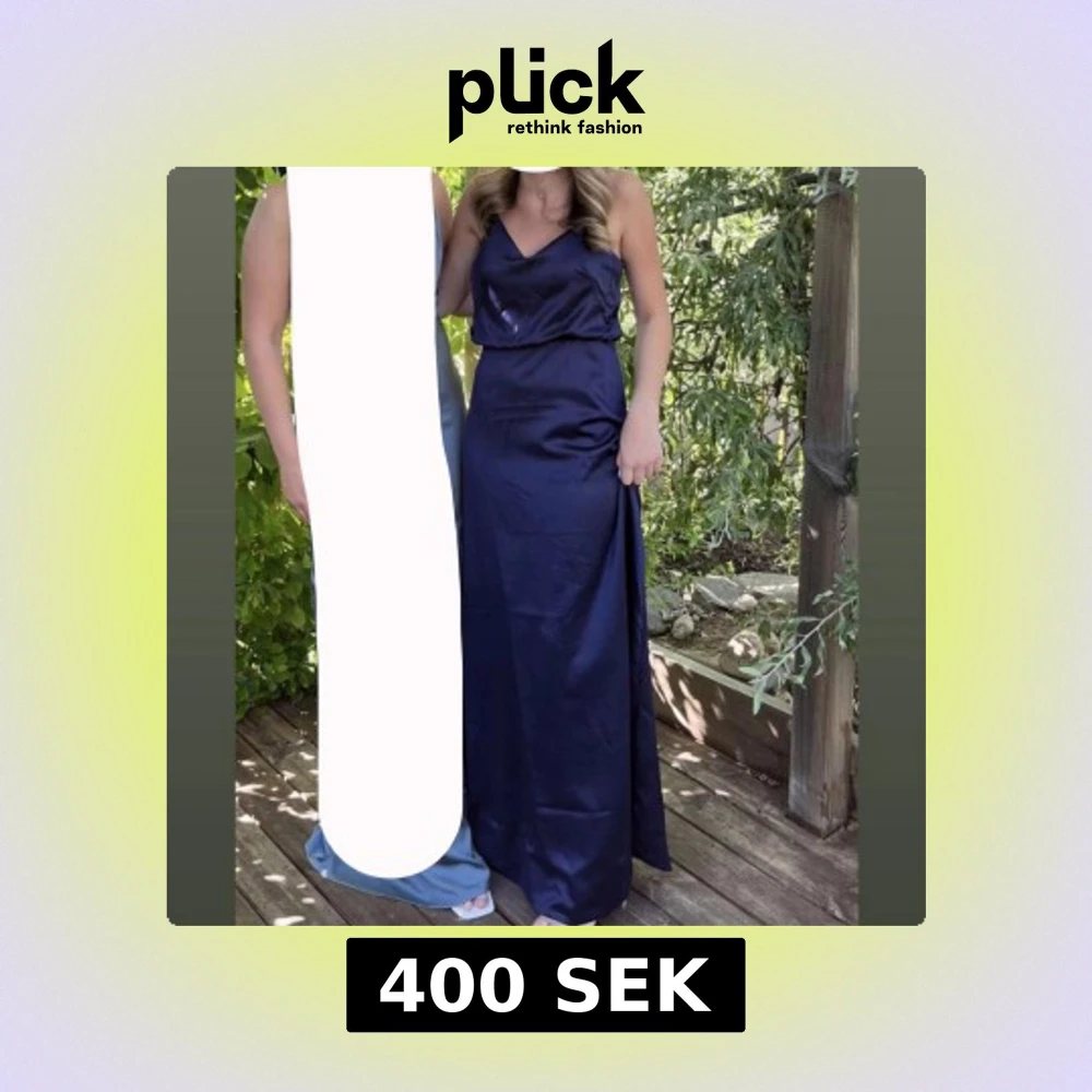 Säljer min balklänning. Snygg marinblå balklänning i glansigt satinmaterial med v-ringad hals och smala axelband. Klänningen har en elegant och enkel siluett som ger en stilren look. Perfekt för dig som vill sticka ut med en klassisk och tidlös stil. Uppsydd, men väldigt lätt att sprätta upp. Använd 1 gång. Är 1,63, hade 6cm klackar och de nuddar backen