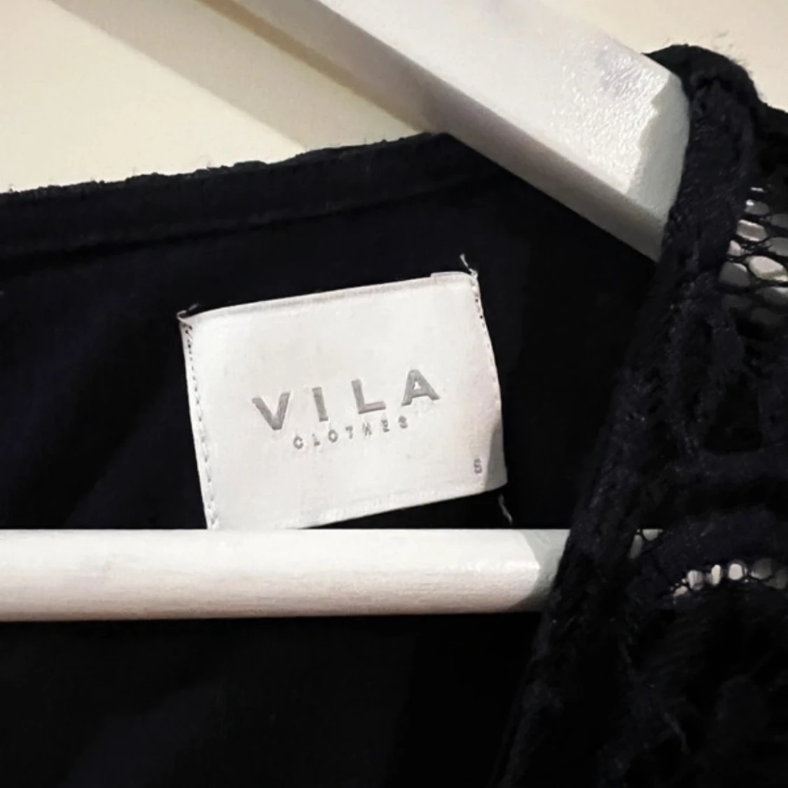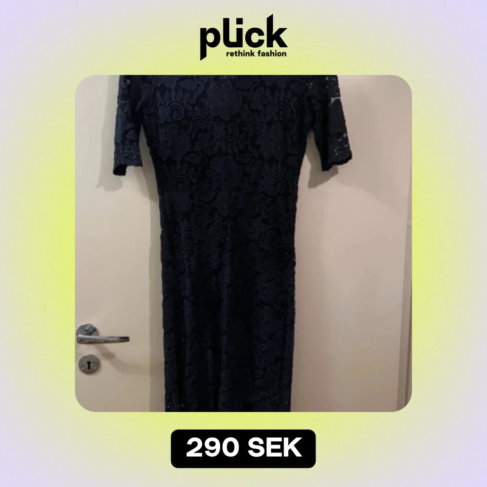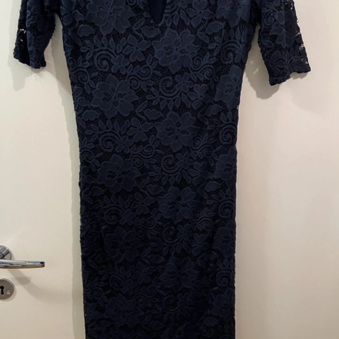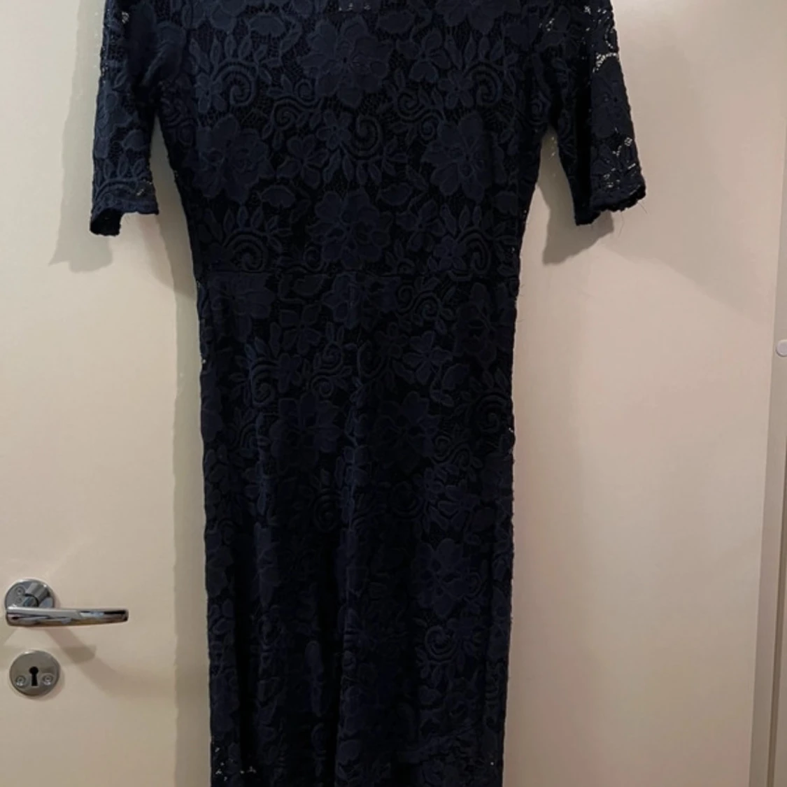Marinblå klänning med spets. Den är i väldigt bra skick, i storlek S och kommer till knäna.