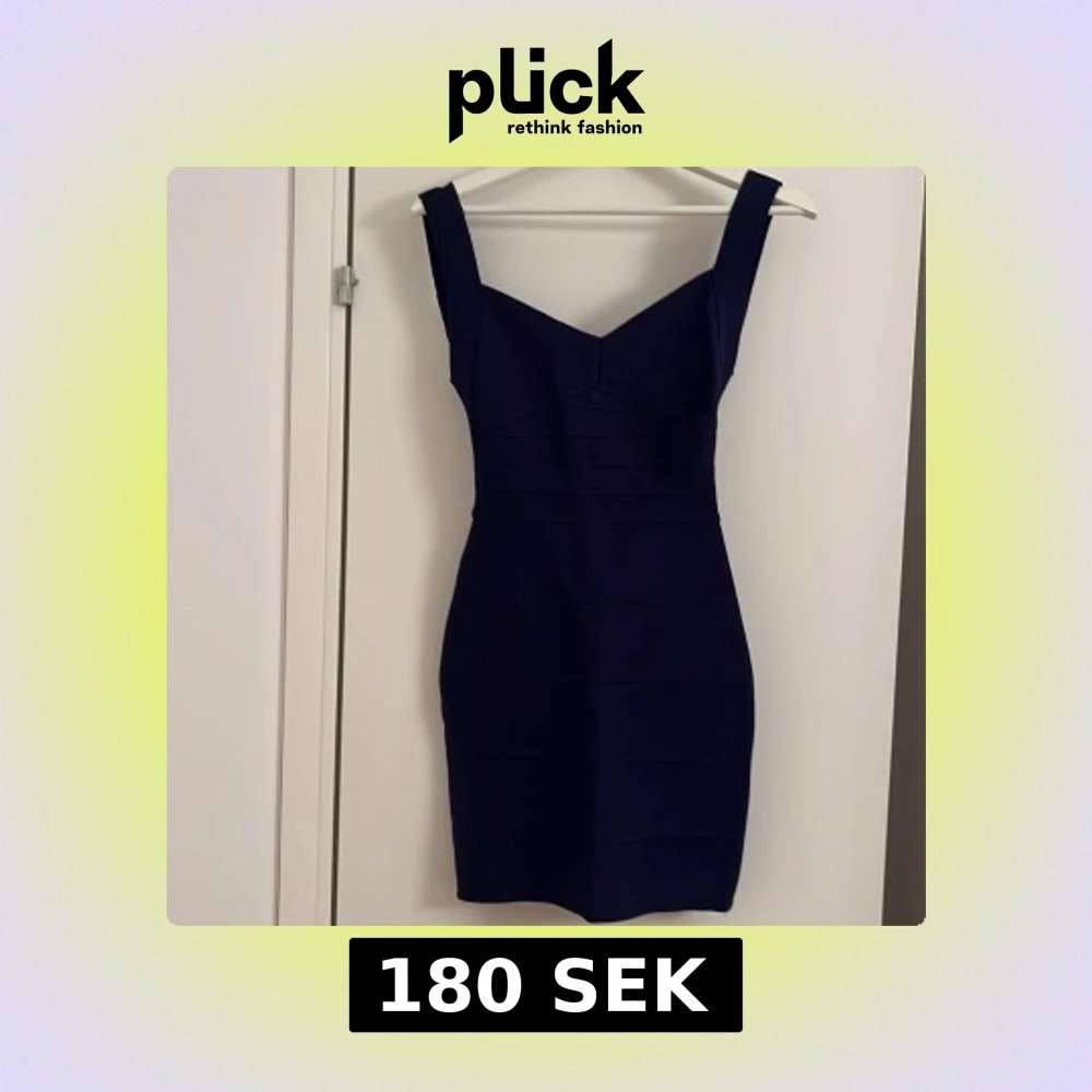 Snygg marinblå kort klänning med breda axelband och v-ringad hals. Klänningen har en figurnära passform och markerade sömmar som ger en cool struktur. Dragkedja baktill för enkel på- och avtagning. Perfekt för dig som gillar stilrena och moderna plagg.