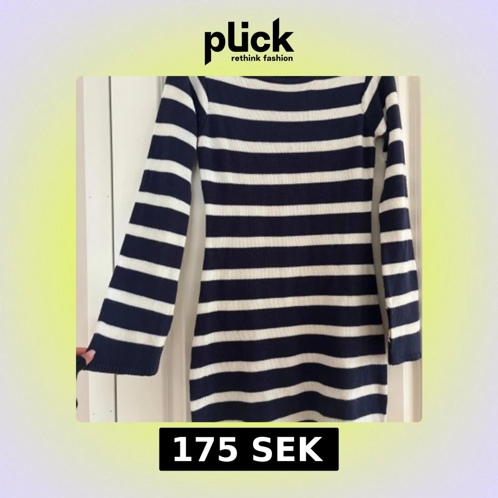 Mysig stickad klänning från Nelly i marinblått och vitt med breda horisontella ränder. Modellen är kort och har långa ärmar. Perfekt för dig som gillar en klassisk och chill stil. Materialet är mjukt och stretchigt, vilket gör den superbekväm.