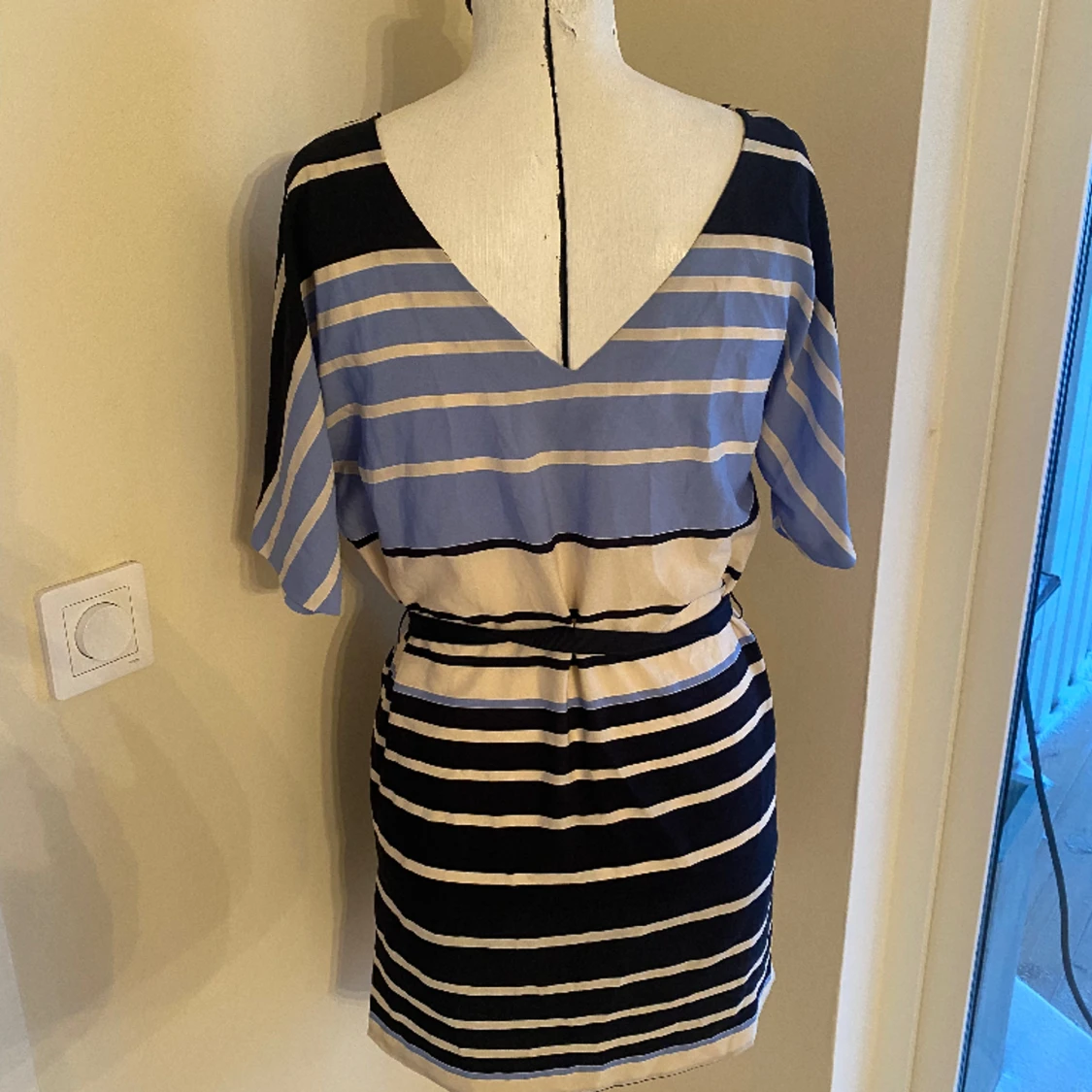 Tunn och fin sommarklänning från MNG suit i fint skick. Band i midjan. Blå och vit, seglartema. Maritimt. Passar dop, skolavslutningar, sommarfester etc.