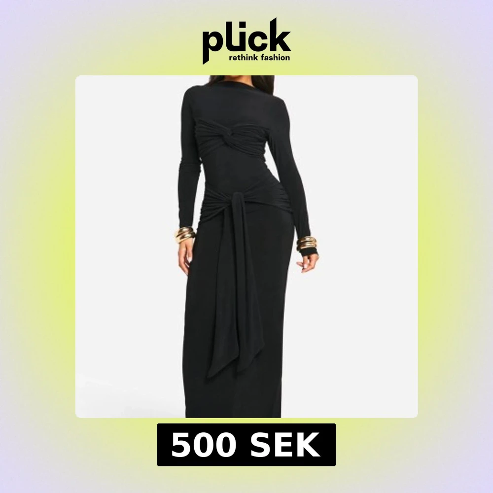 Super snygg lång klänning ifrån boohoo. Den har knyt detaljer över bröstet och midjan så sitter väldigt fint på. Använd endast i några timmar så den är i ny skick. Köpte den för 700.