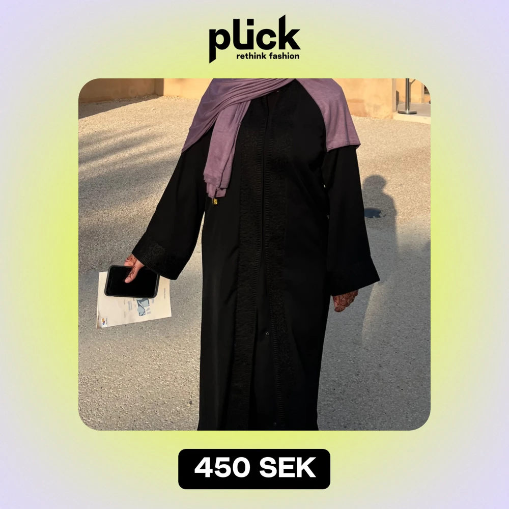 Abaya i perfekt skick. Har svart broderi längst ner på ärmarna och i mitten av klänningen.