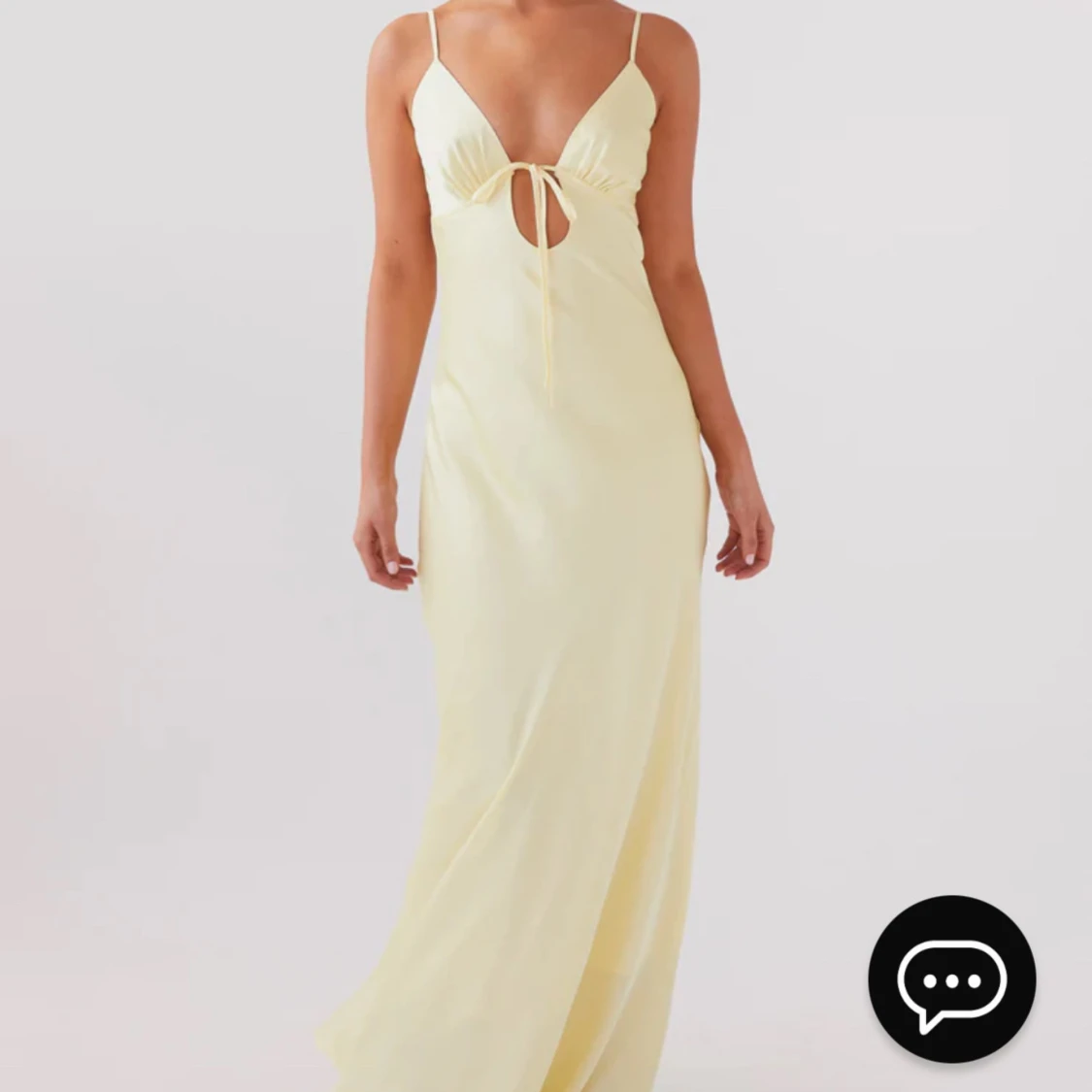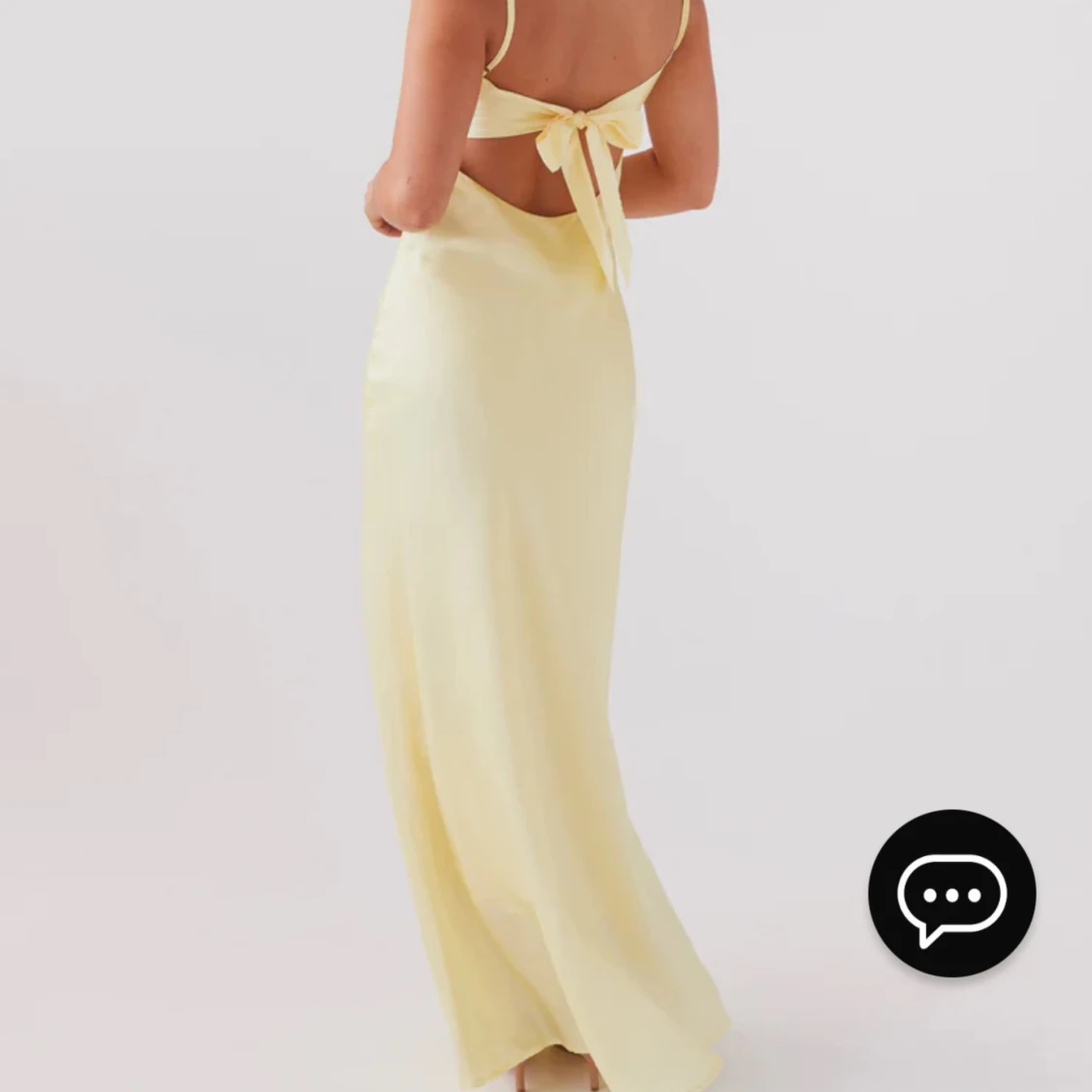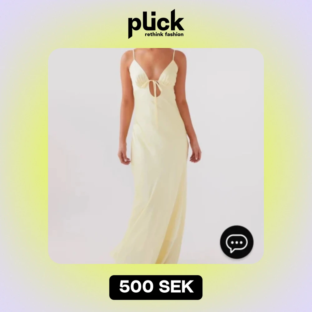 Underbart vacker gul siden klänning med rosett i ryggen. Aldrig använd. Orginal pris 786 kr.