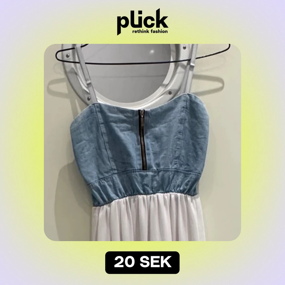Sommarklänning i jeans och chiffong. Okänt märke. Buren som en Small.