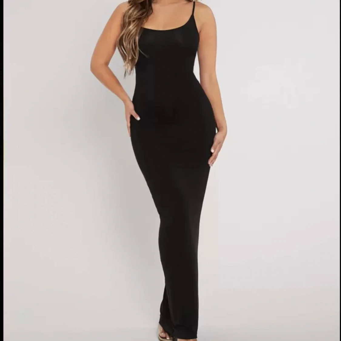 Supersnygg svart maxiklänning med smala axelband och figurnära passform💘🌟 säljer eftersom den aldrig används, har endast använts 1 gång🥰 inga defekter!