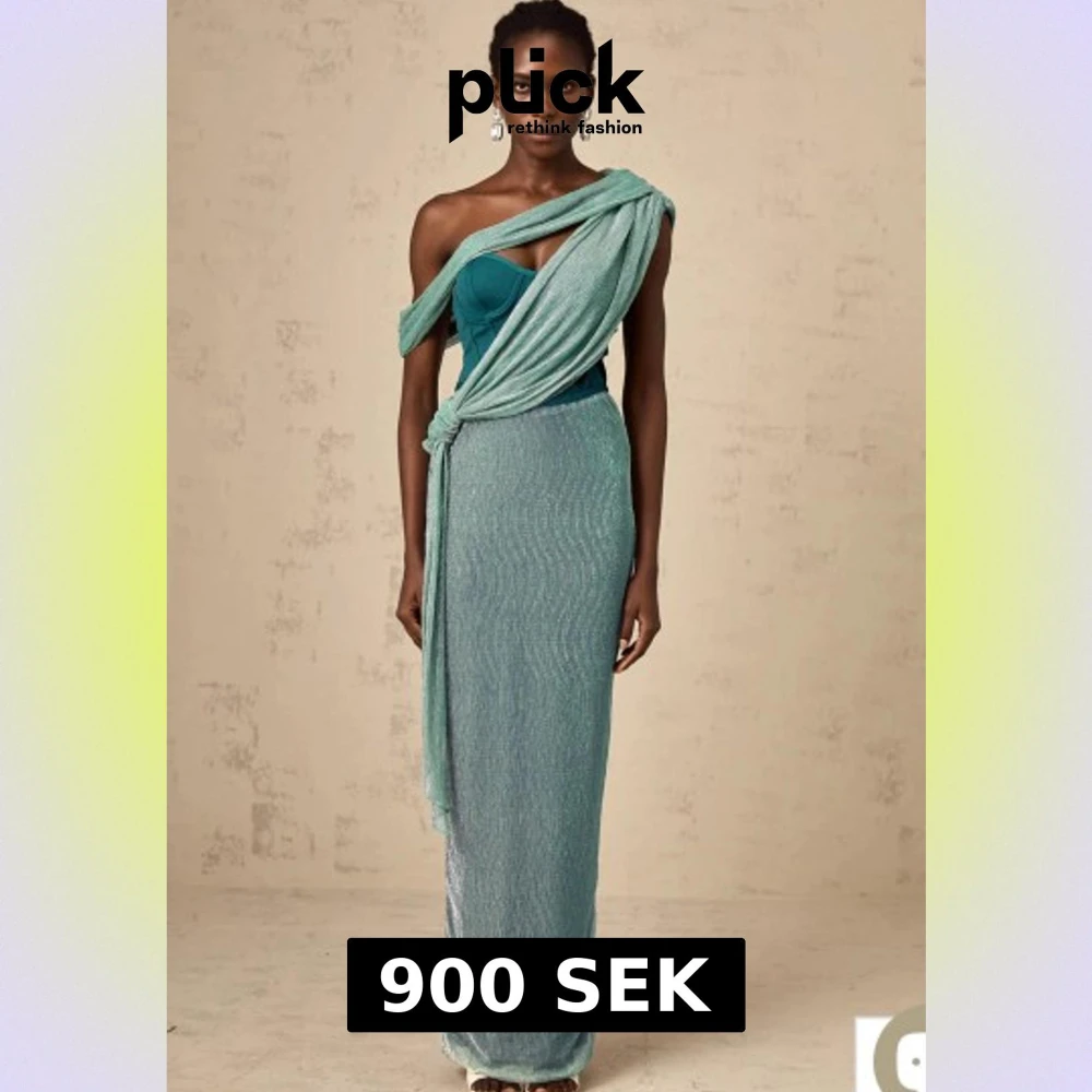 Säljer en elegant turkos långklänning med glittrigt tyg och omlott-detalj över axeln. Klänningen har en axelbandslös design med draperad effekt och knyt i midjan. Materialet är glansigt och skimrande, och baktill finns en slits för extra rörelsefrihet. Klänning från miss rosier storlek xs helt ny med prislapp. Nypris 1800kr.
