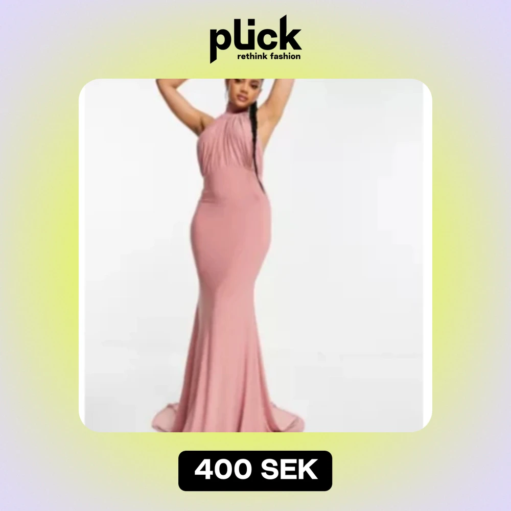Oanvänd Rosa maxiklänning med halterneck, öppen rygg och släp Röda bilderna är bara för att visa modellen på klänningen