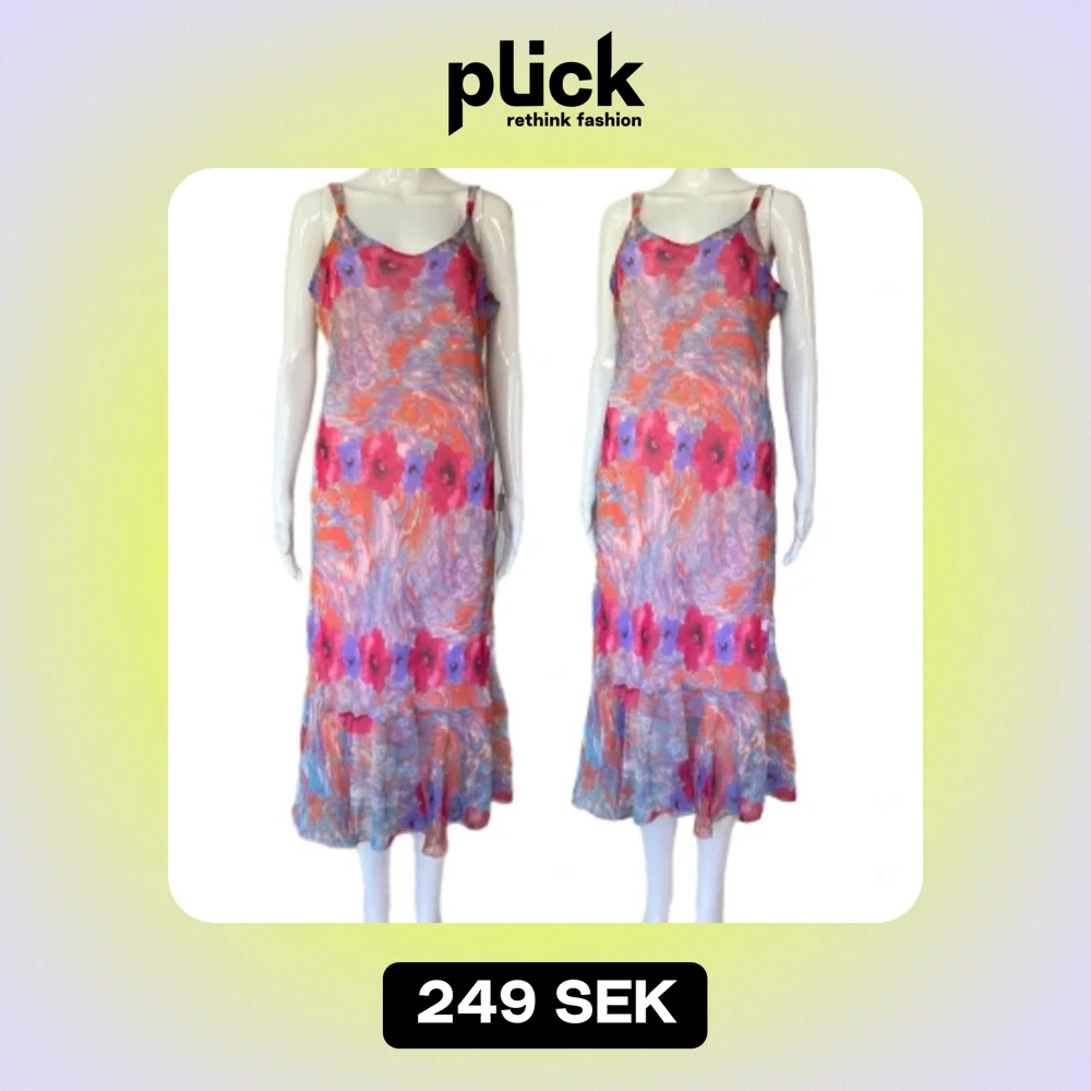 I fint skick, finns några slitningar som syns på de sista bilderna. I storlek 44. Skyltdockan använder XS. Kortare rosa underlager finns! Blommiga meshmaterialet är längre och genomskinligt runt vaderna. Armhåla till armhåla 50cm & Längd cirka 100cm