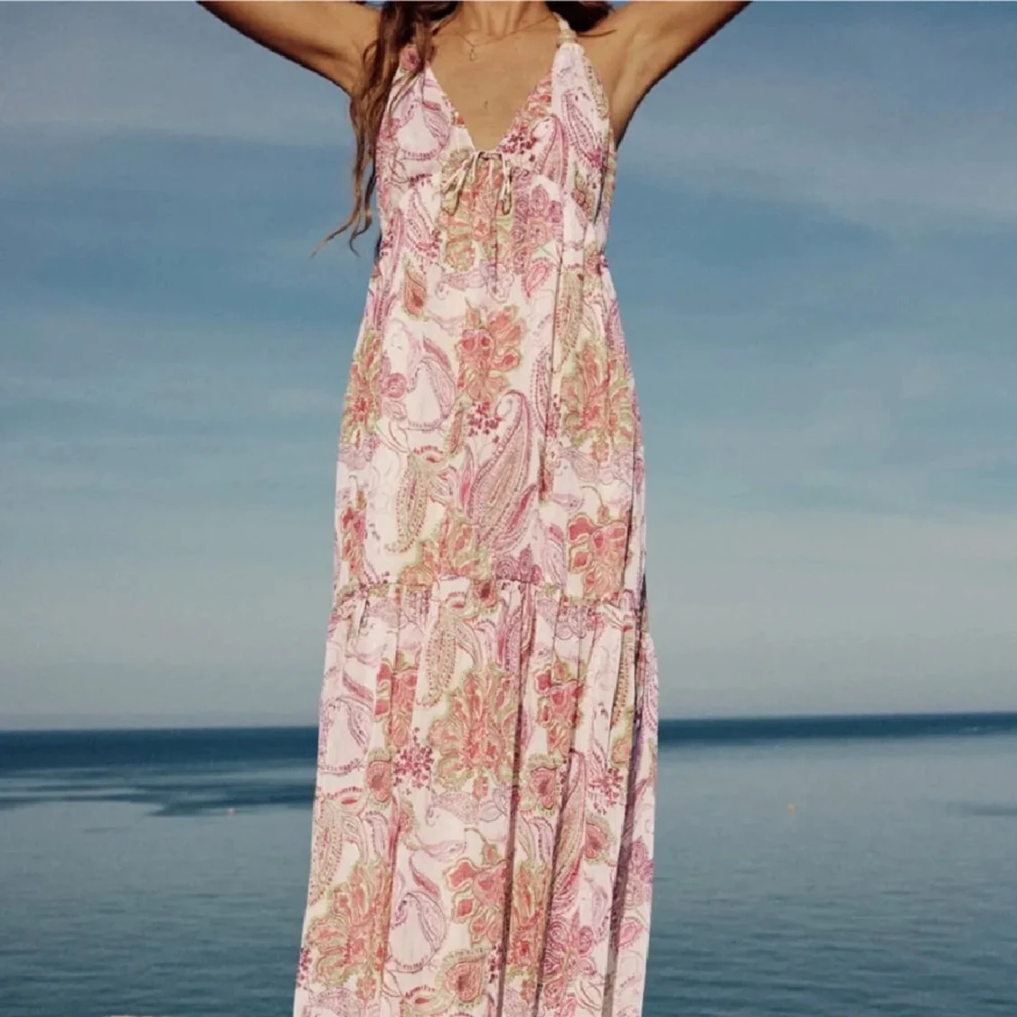 Långklänning från Zara med såå fint mönster och fina detaljer, säljer då den tyvärr inte kommer till användning… Den är använd men har inga märkbara/”stora” defekter. Strl: S 🤍🤍