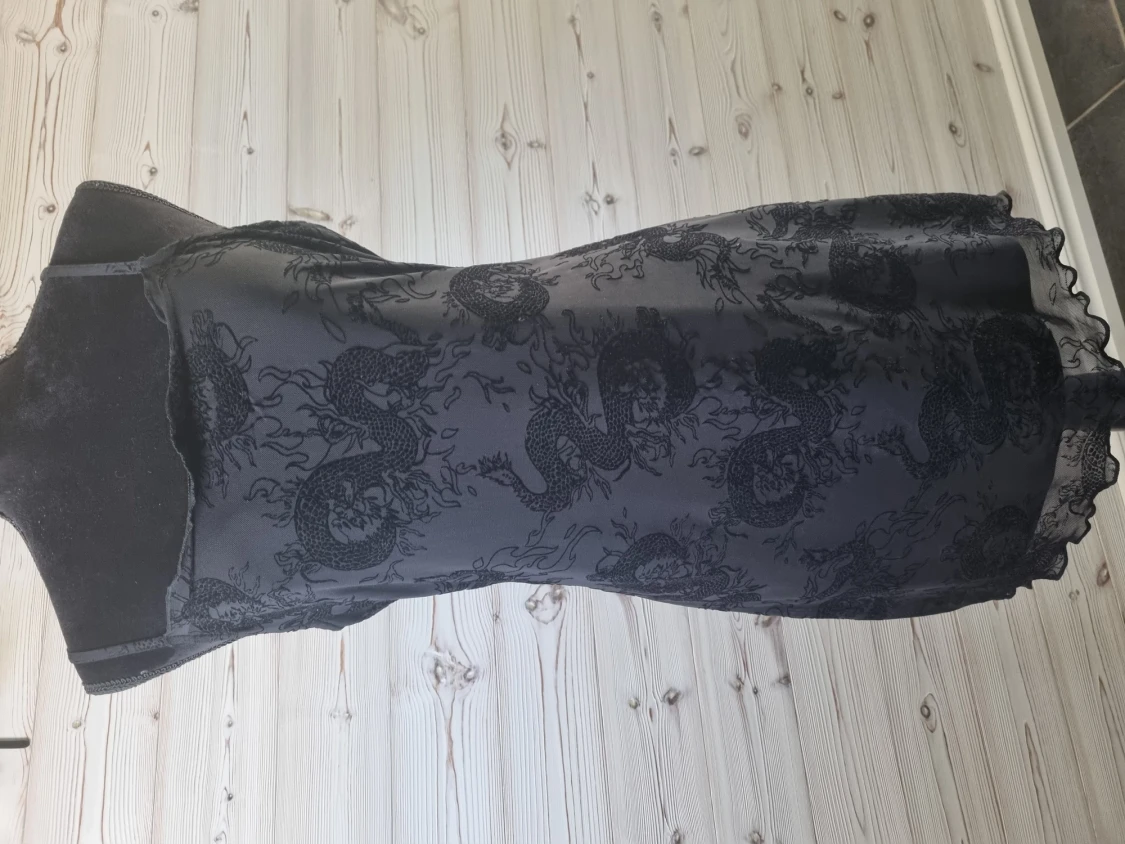 Svart klänning i mesh ifrån hm med svarta drakar i sammet över klänningen använd 2 gångnger