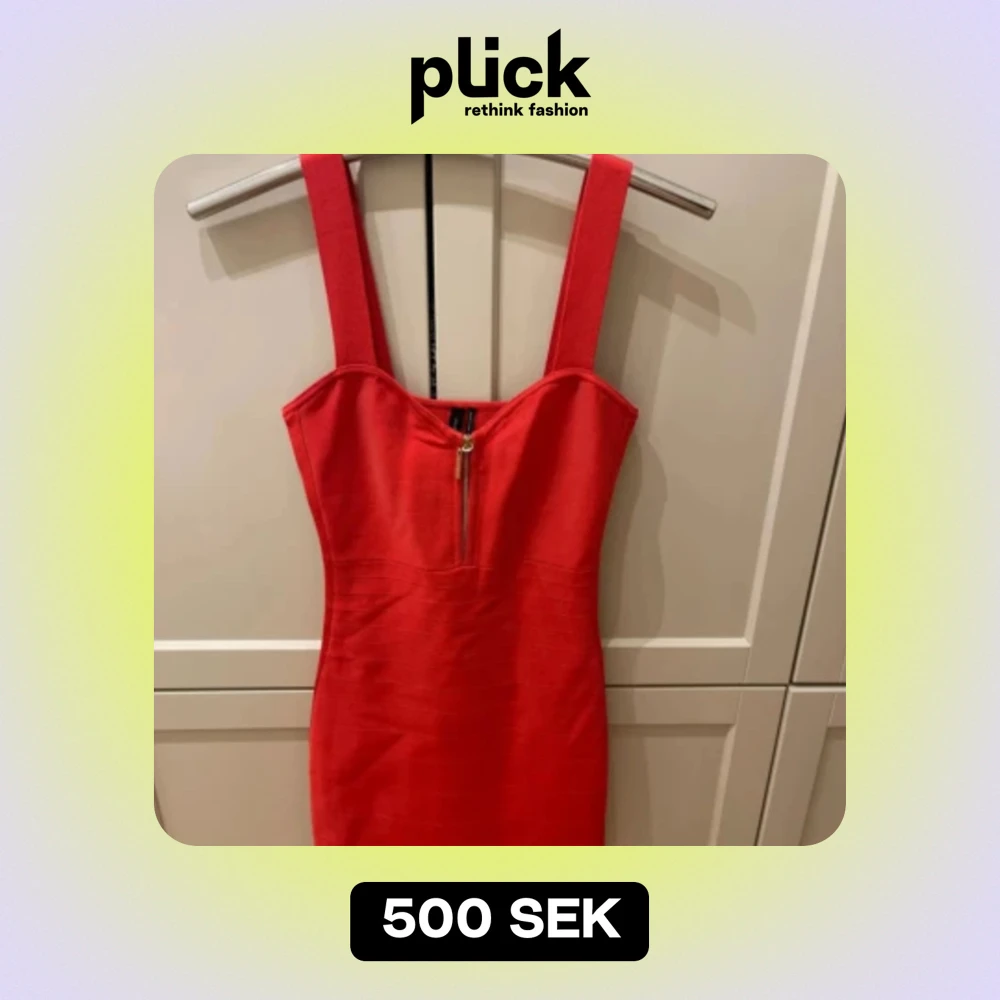 Säljer en snygg röd bandageklänning från Guess Marciano med dragkedja framtill. Den är ärmlös och har breda axelband, vilket ger en stilren look. Perfekt för festliga tillfällen! Storlek M men passar även S.